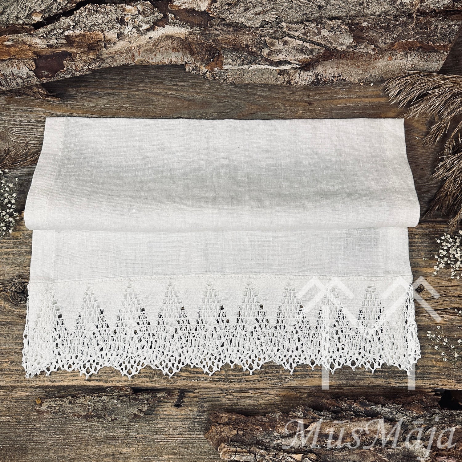 Lina galda celiņš "NATURAL" ar šūnas mežģīni, nemīkstināts