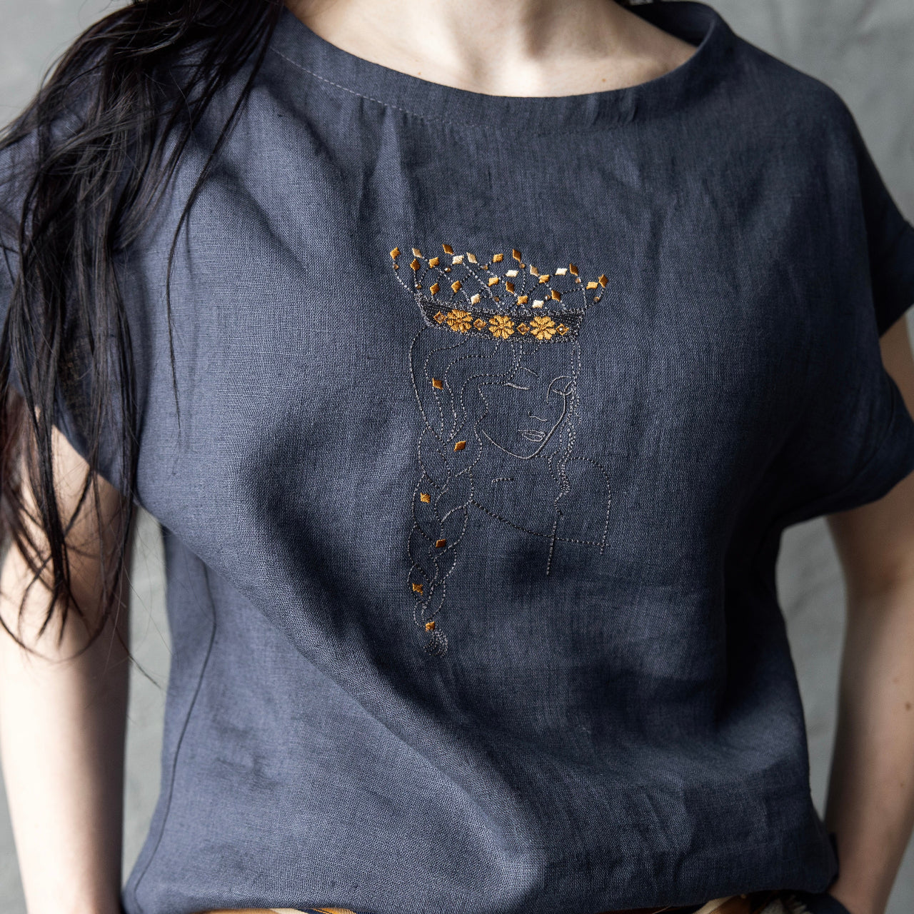 Lina blūzīte DŪMAKA ar izšūtu DZINTARA KRONI