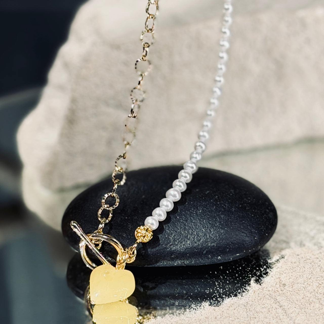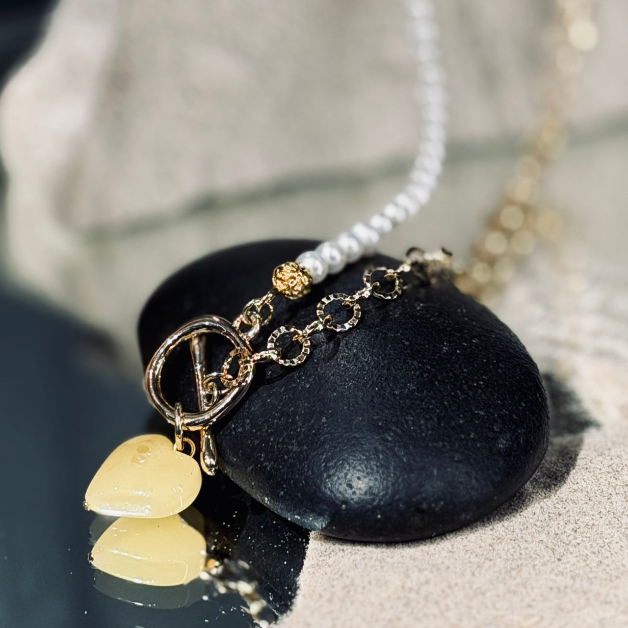 Asimetriska Upes Pērļu kaklarota DZINTARA SIRDS
