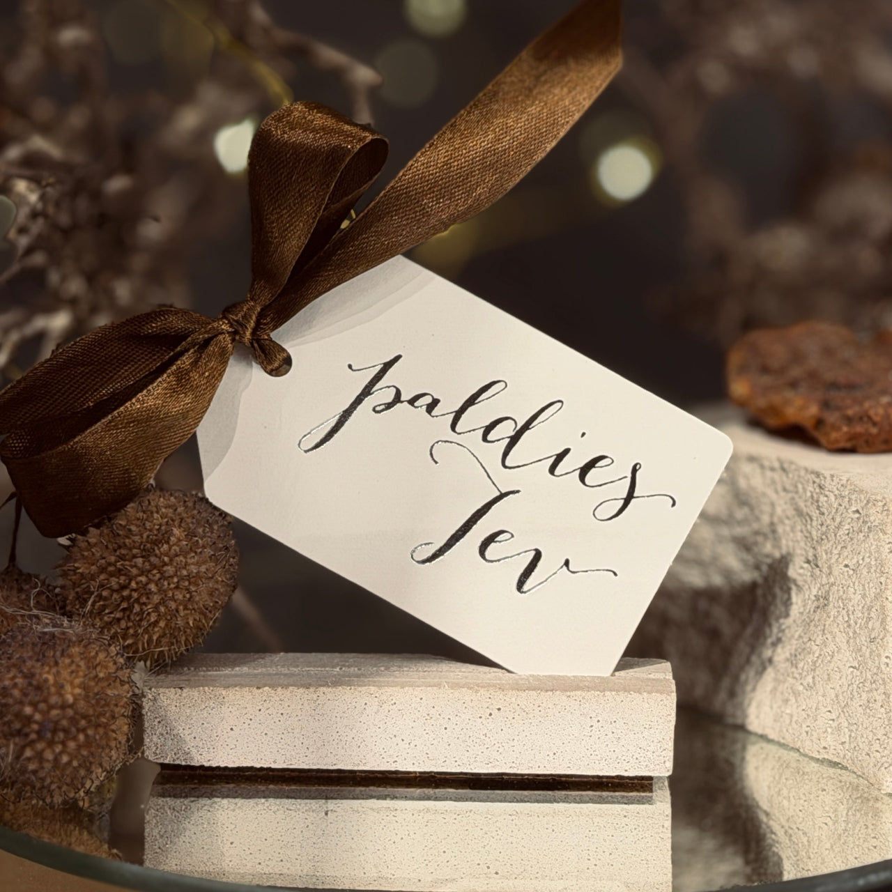 Dāvanu zīmītes ar PATEICĪBAS vārdu.