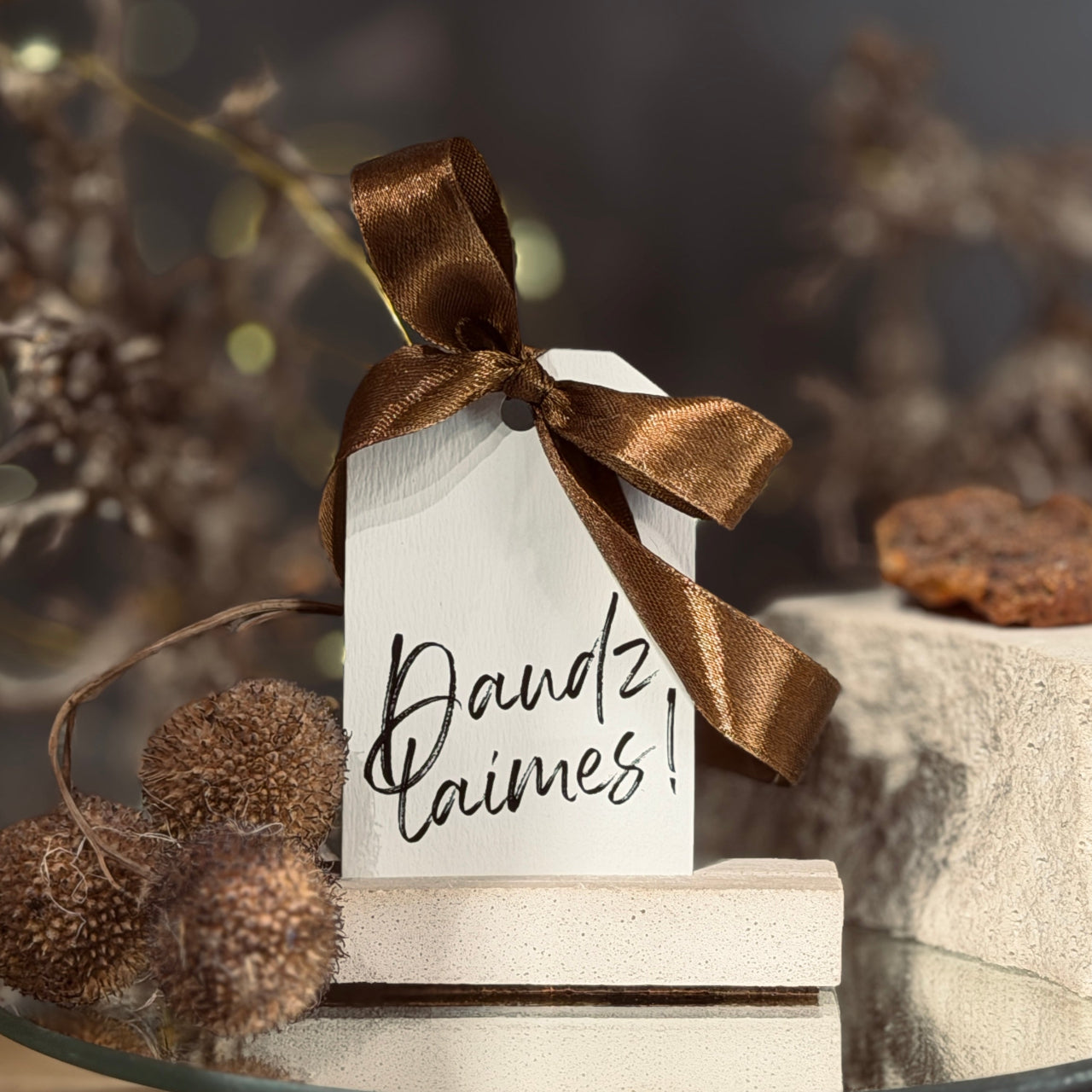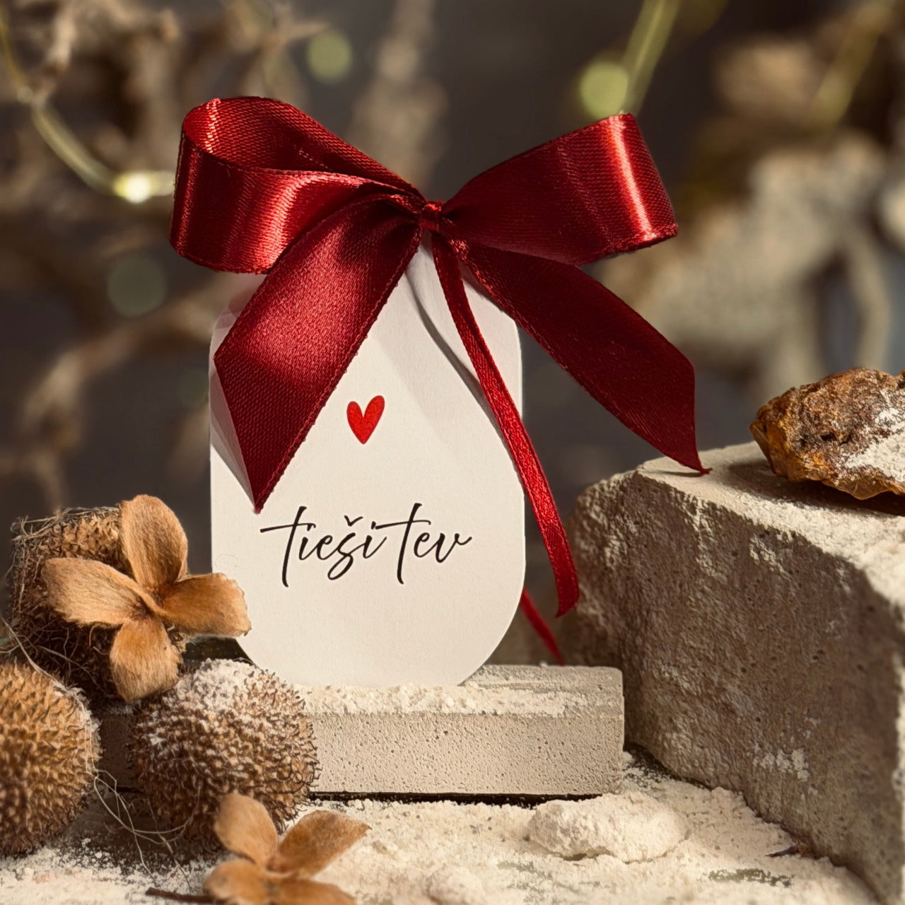 Sirsnīgas dāvanu zīmītes "Vēlējums" ar vienkāršiem, emocionāliem uzrakstiem un ilustrācijām - "Tieši Tev", "Daudz laimes", nelielu sirsniņu vai rotaļīgu zīmējumu. Tā ir domātas brīžīem, kad gribas pateikt ko patiesu, siltu un personīgu - bez liekiem vārdiem.