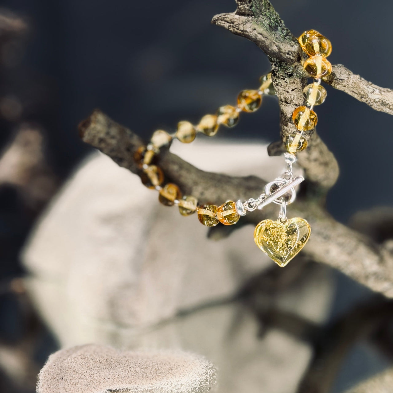 Silta, izteiksmīga un ar raksturu. Dzintara sirds ir aproce (rokassprādze, kurā dabīgs Baltijas dzintars savienojas ar smalku sirds formas kulonu un sudraba vai apzeltītu aizdari.