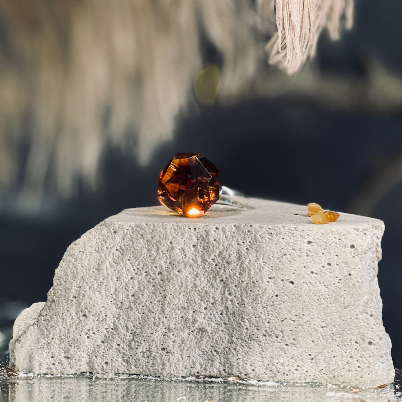 Dzintara gredzeniem 18 izmērs, dzintara gredzeniem iespējams pastiept  lielāku pašu sudraba gredzenu.