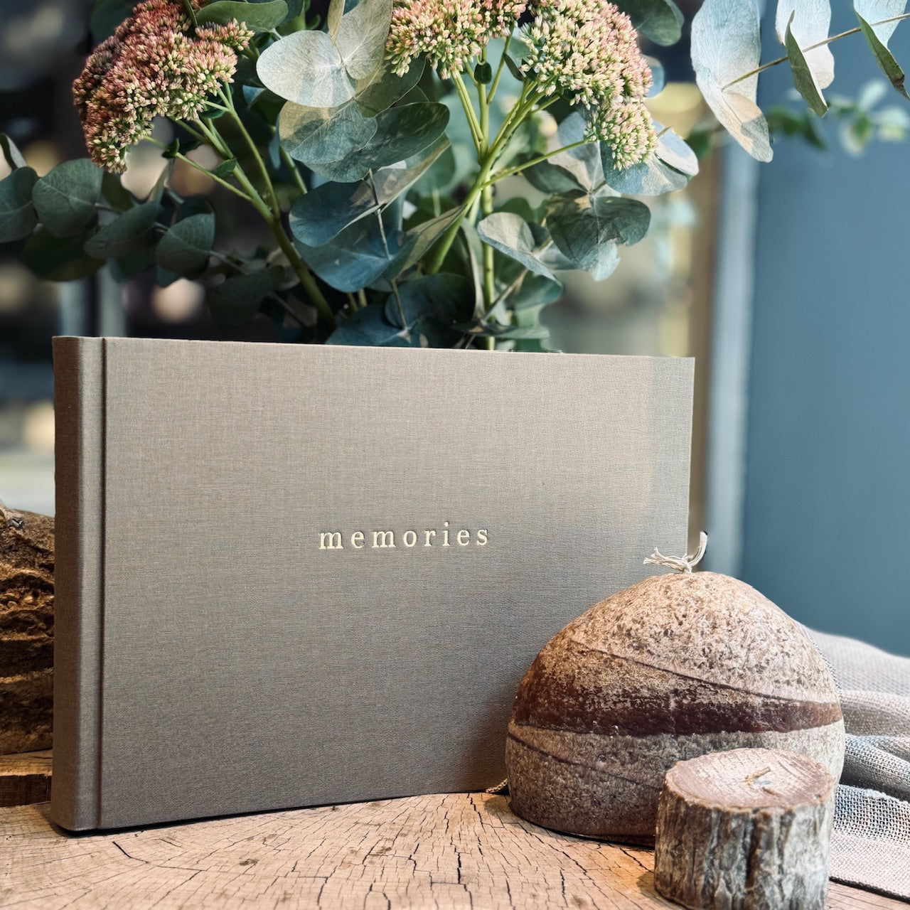 Eleganta minimālisma stilā ieturēts albūms lina auduma vākos ar MEMORIES iespiestu reljefā zelta krāsā vai bezkrāsainu. Albūms sastāv no bieza, kvalitatīva papīra un gaisīgām starplapām.