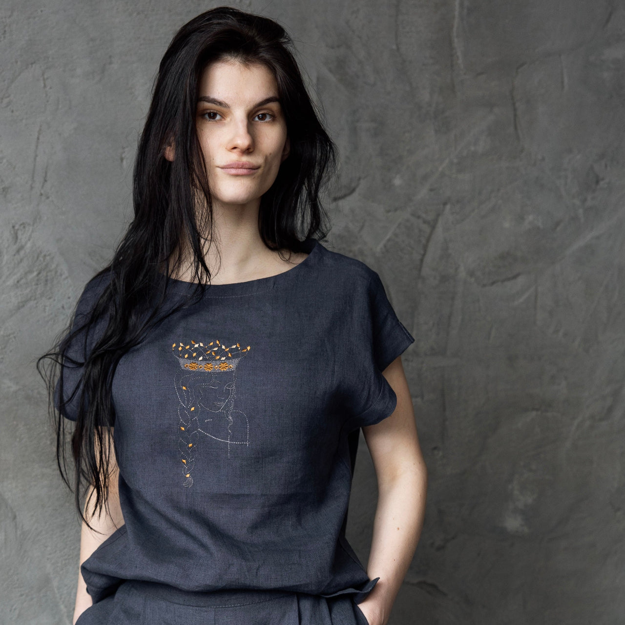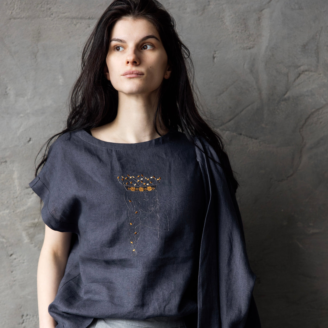 Izšūta lina blūzīte DŪMAKA