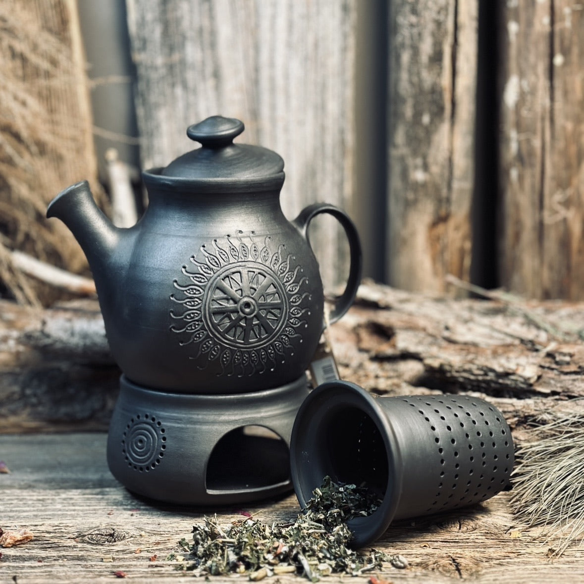 Keramikas tējkanna ar sietiņu MELNAIS ZIEDS