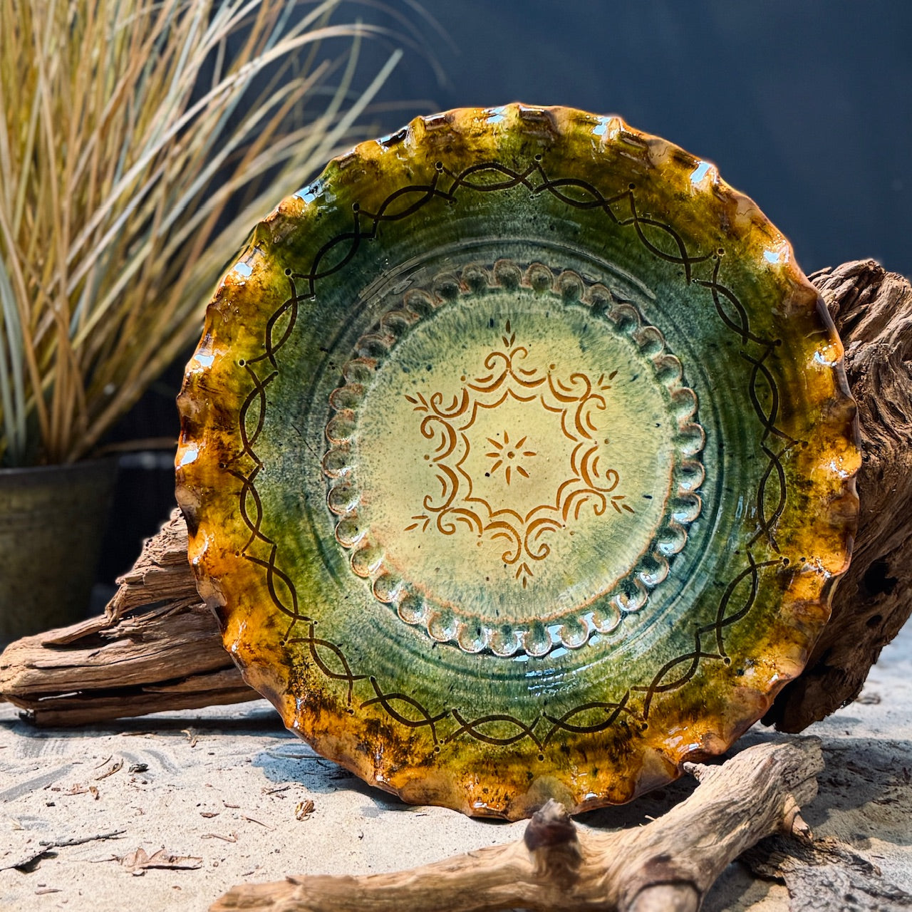 Latgales sienas šķīvji ir darināti ar rokām, košajās glazūrās ir viegli iestrādāti dažādi ornamenti.