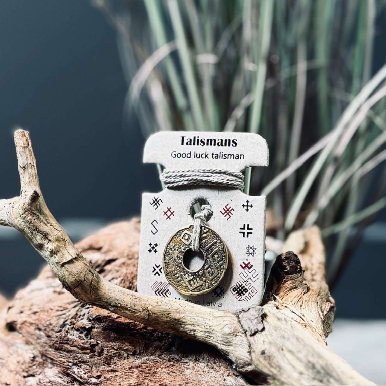 Talismans ir ievērts lina aukliņā.