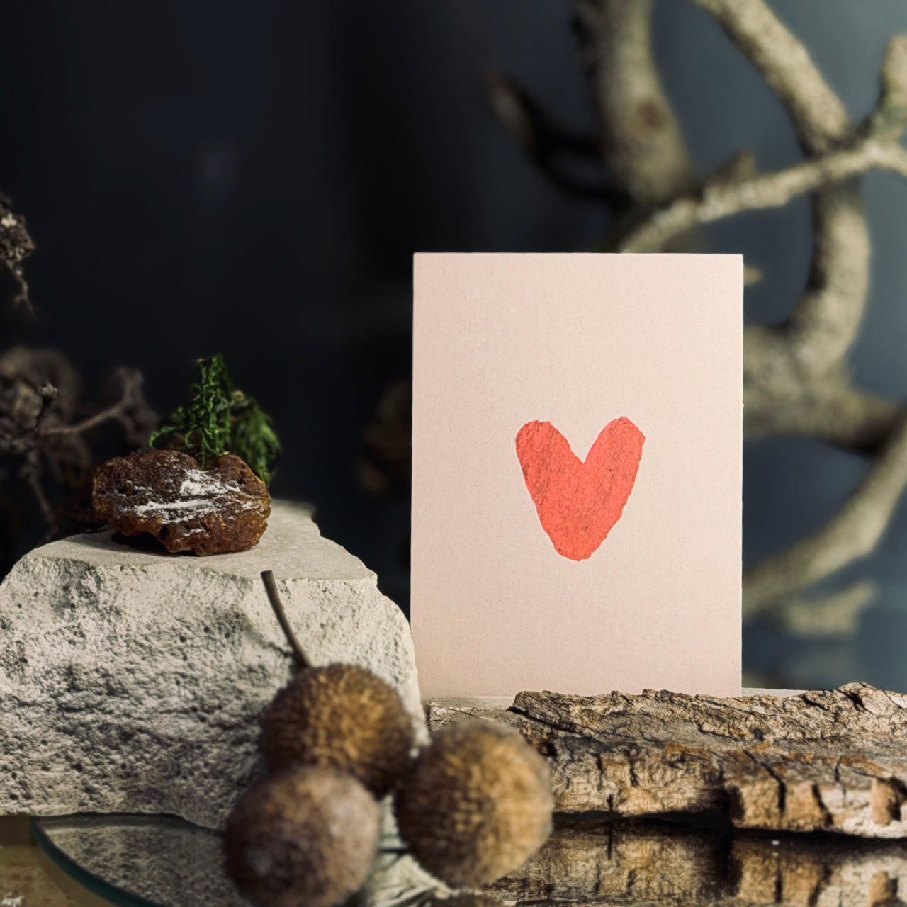 Mīlestība ir mazu apsveikuma kartīšu sērija, kas radīt klusām, patiesām sajūtām. Smalki ziedu un augu motīvi veido sirds simbolu - trauslu, mierīgu un pilnu nozīmes. Tumšais fons izceļ zīmējuma smalkumu, piešķirot kartītēm īpašu dziļumu un eleganci.