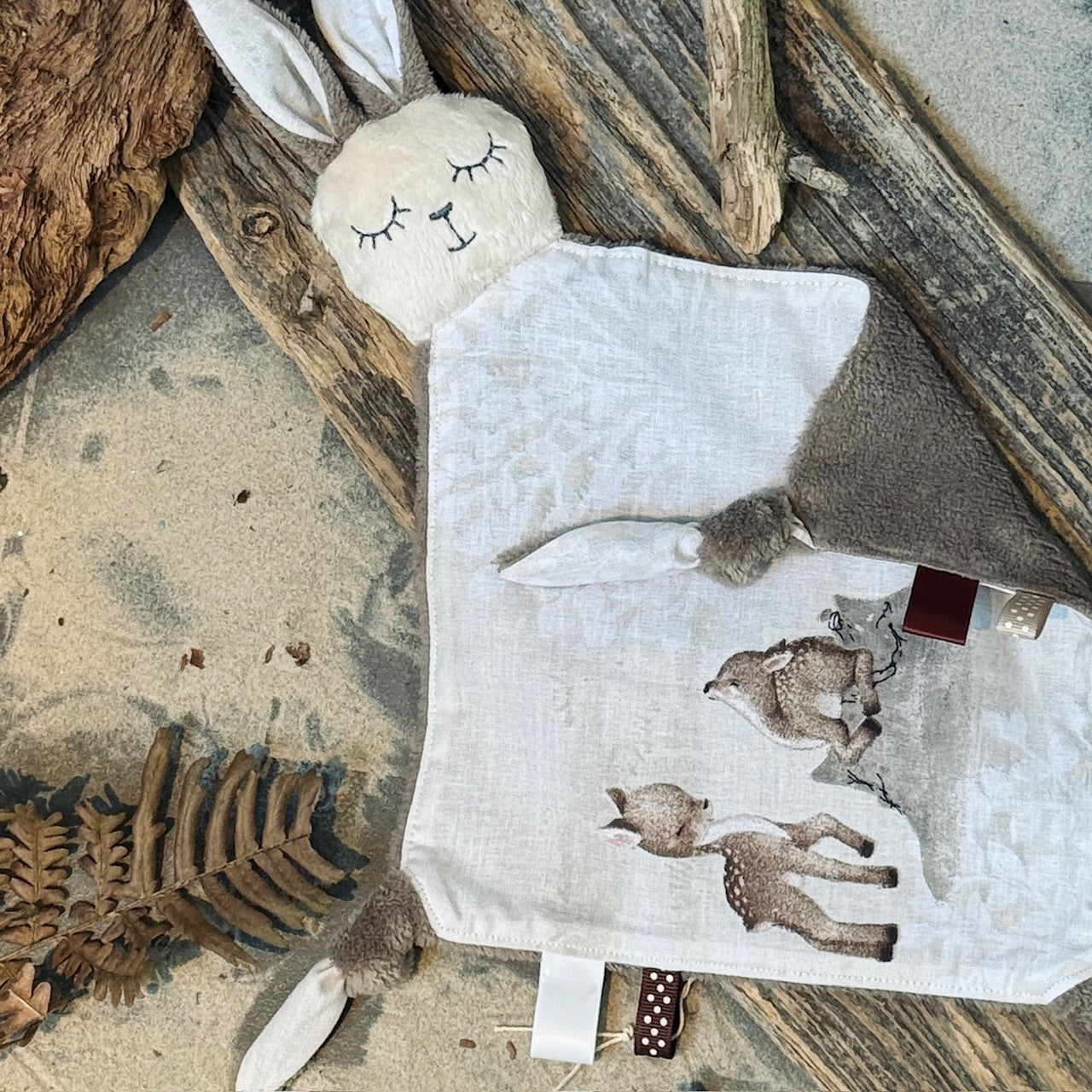 Mīlīgā zaķīša forma, dažādie auduma faktūru stūrīši rosina mazuļa taustes un redzes attīstību, vienlaikus sniedzot mierinošu tuvuma sajūtu.