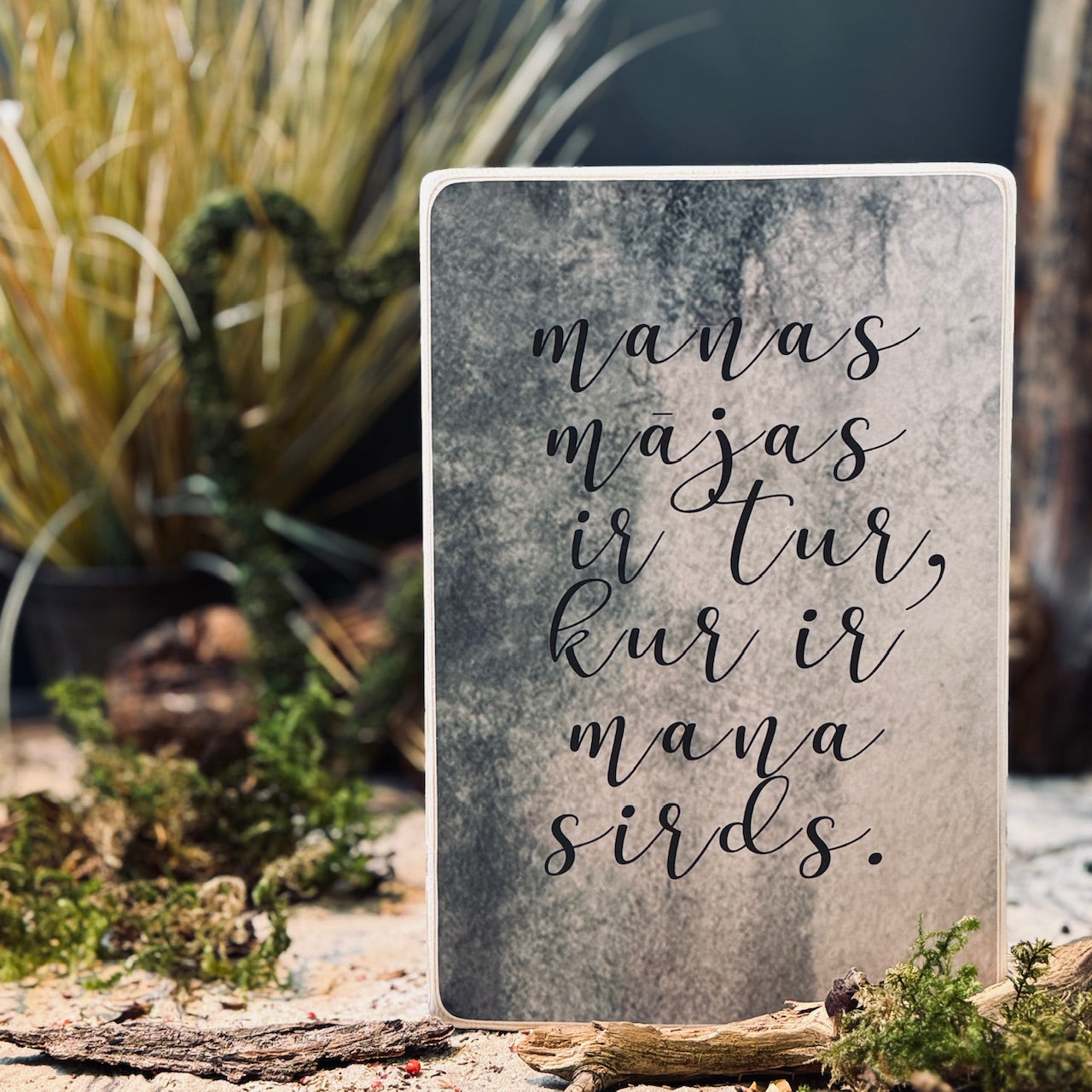 Mājas nav tikai sienas un jumts. Tās ir sajūtas - siltas rokas, smiekli virtuvē, klusums, kas mierina, un acis, kas sagaida. Šie ozolkoka sienas dekori ar tekstiem par mājām ir radīti, lai atgādinātu: īstās vērtības ir tur, kur mēs esam kopā.