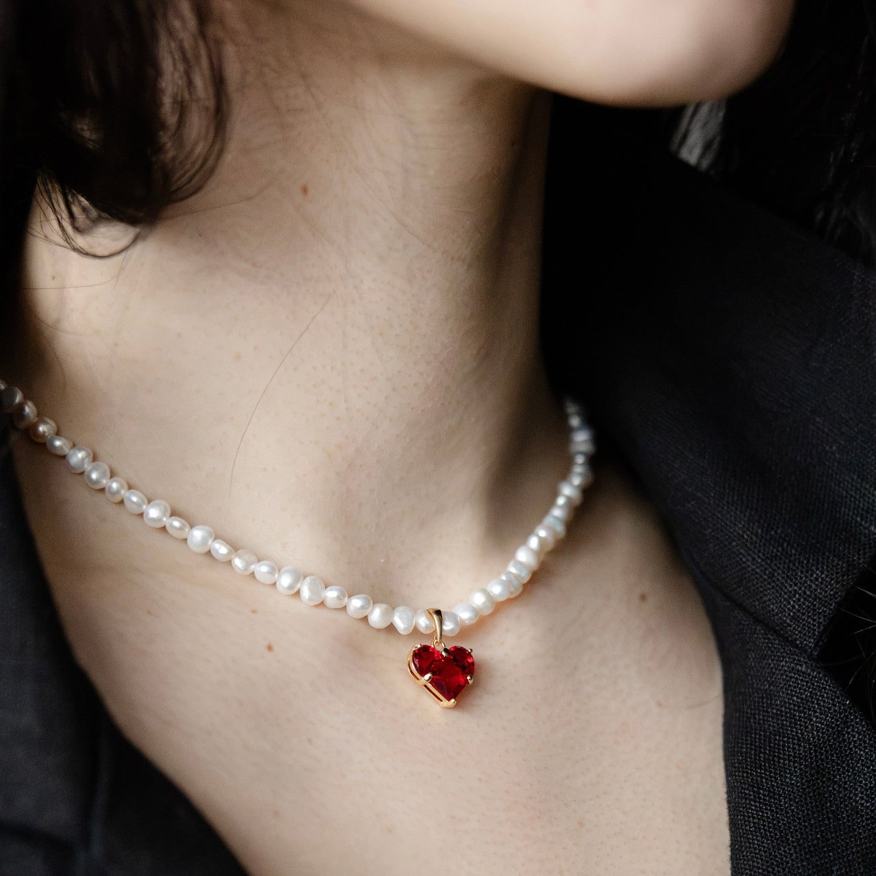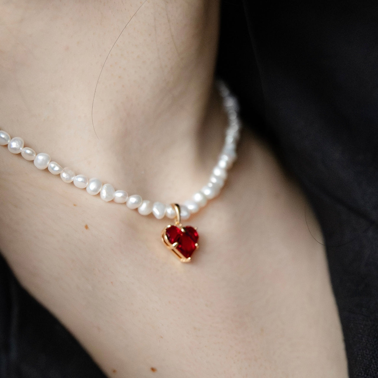 Upes pērļu kaklarotas ir radītas no dabīgām upes pērlēm, katra ar savu unikālo formu, spīdumu un raksturu. Sirdskulons ir kā mirdzošs akcents, kas pieskaras gaismai un atdzīvina rotu, bet pērles piešķir tai laikmetīgu, sievišķīgu šarmu.