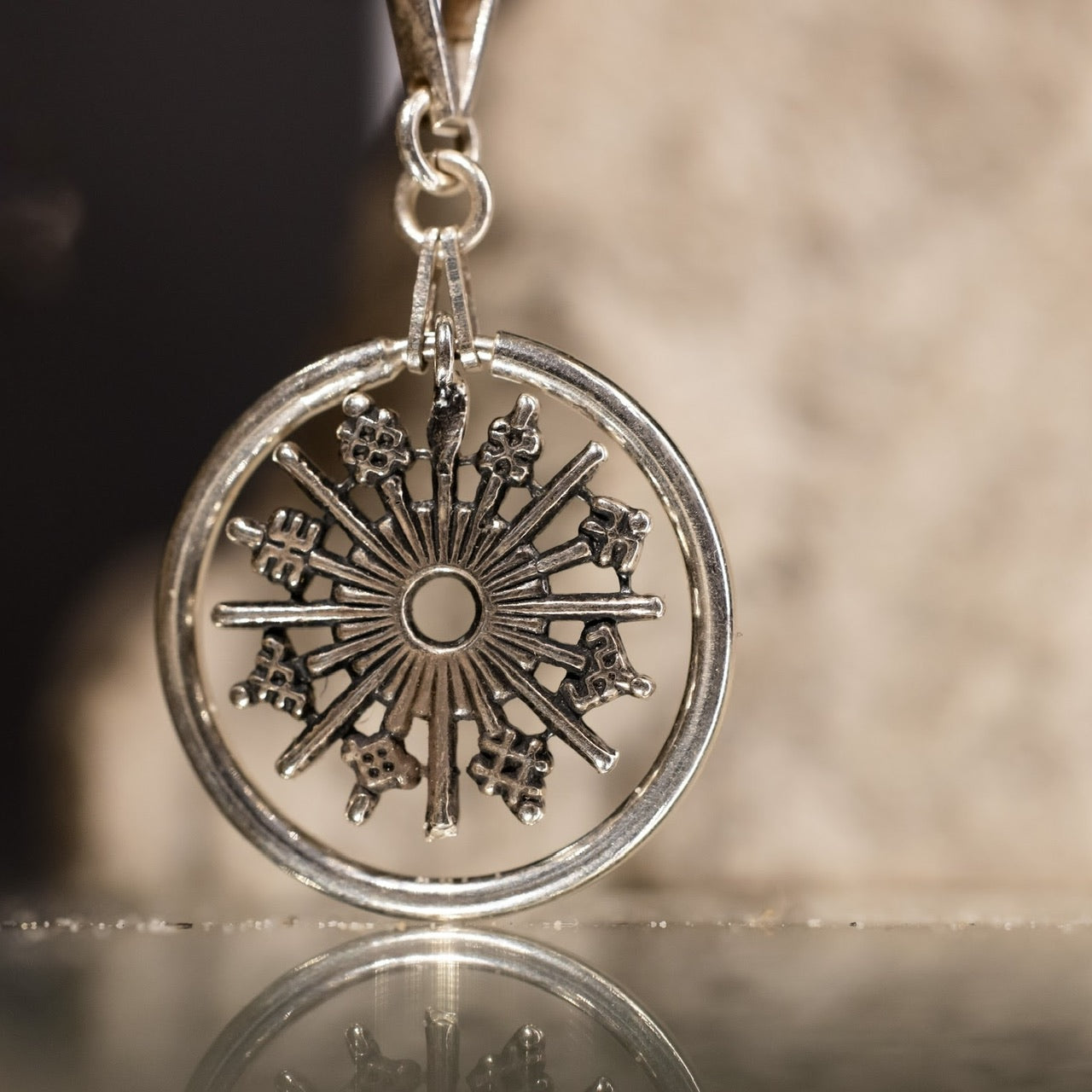 Tā raksts ataino fada apli un saules ceļu cauri divpadsmit mēnešime, katram staram iemiesojot dabas ritmu, gaismas un tumsas līdzsvaru. Kulons ir kā maza laikrāža zīme, kas atgādina par mūsu senču ciešo saikni ar sauli, gadskārtu svētkiem un dzīves ritējumu.