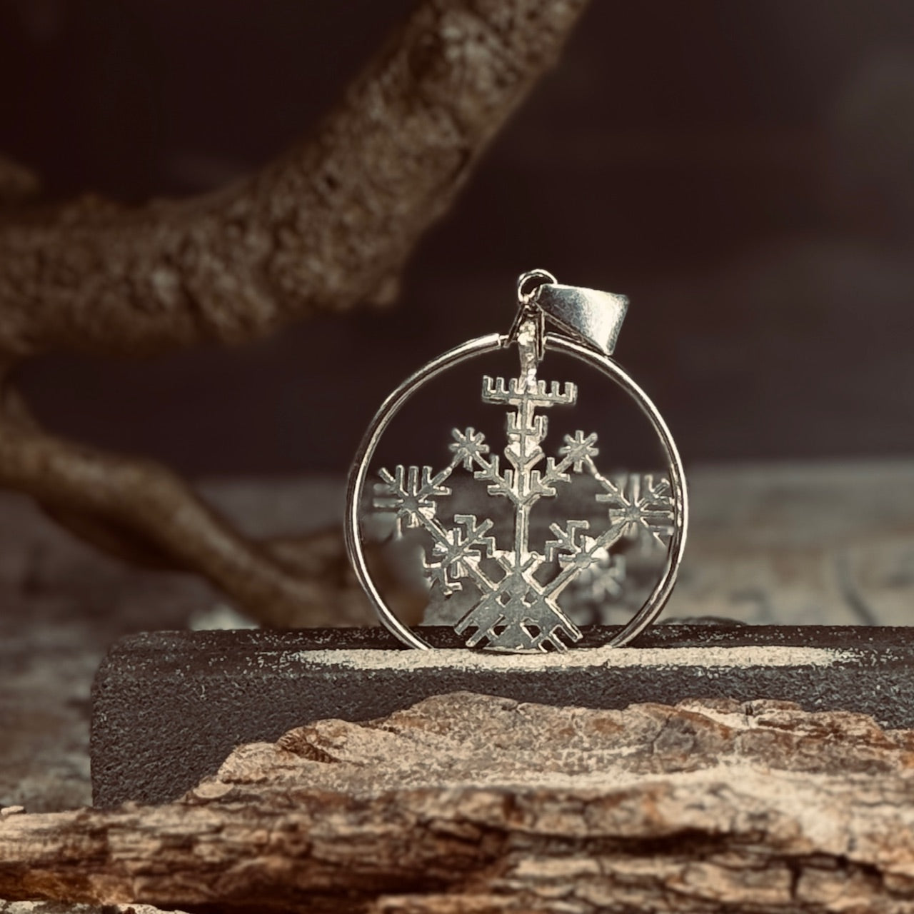 Izgatavots no tīra sudraba, rūpīgā meistara rokām, šis greznais sudraba kulons sevī nes gadsimtu dziļumu un debesu gaismu. Katrā zaru līkumā - stāsts. Katrā līnijā - spēks.