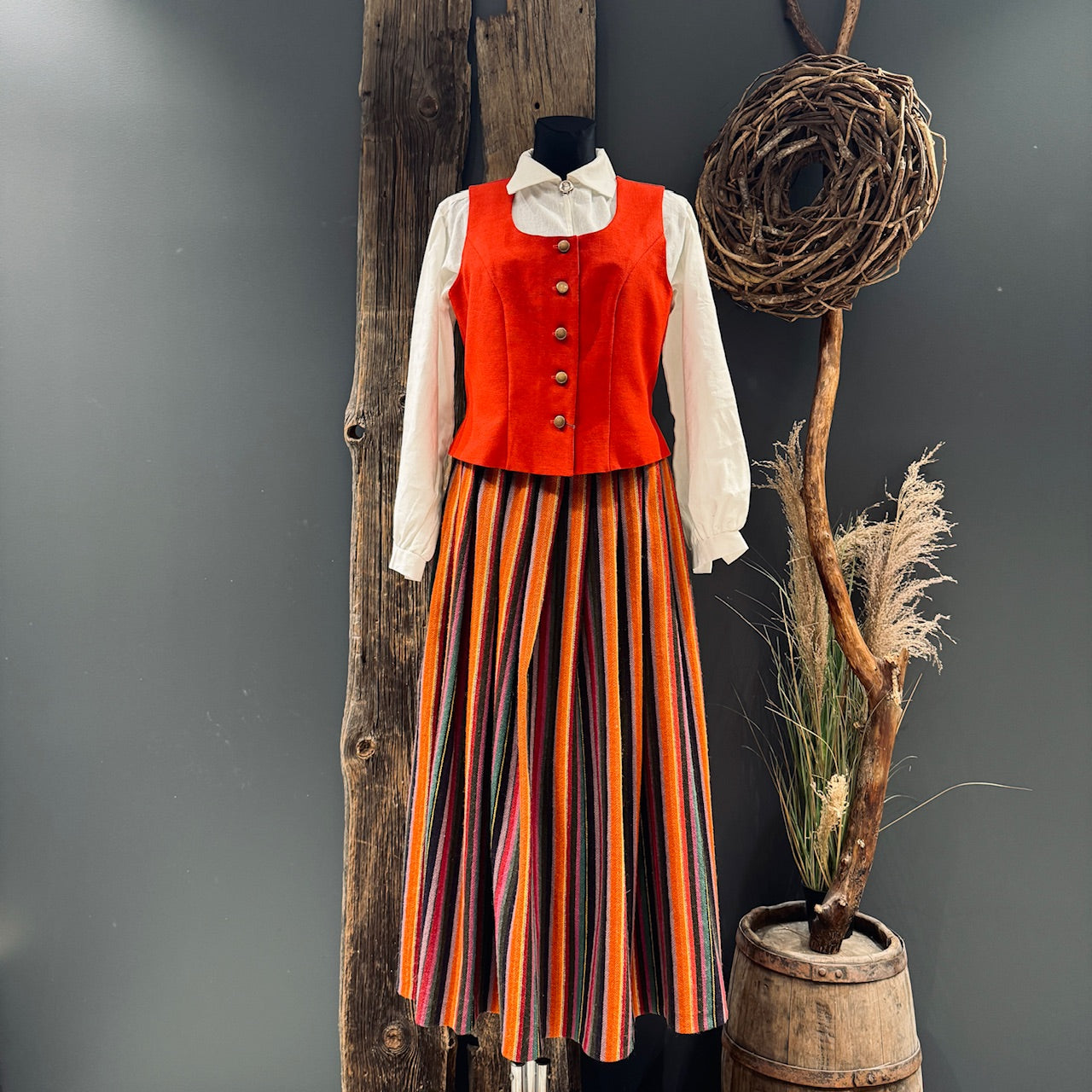Šī svītru spēle ir tipiska Kurzemes brunčiem, kas parasti bija plati, biezi krokoti un svinīgi.