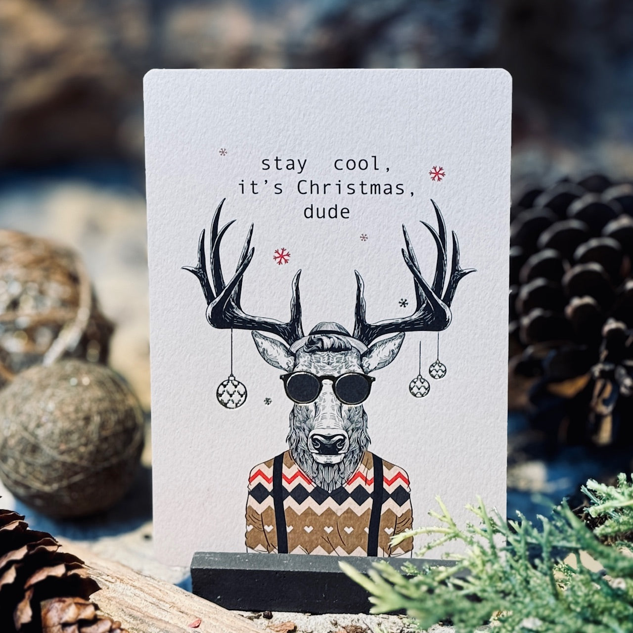 Šī apsveikuma kartīte piešķirs Tavai dāvanai smaidu un rotaļīgu svētku garu. Piemērota gan draugam ar humora izjūtu, gan kolēģim, kurš vienmēr "stay cool".