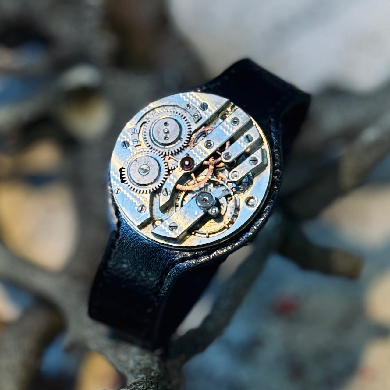Rokassprādzei tiek izmantoti īstu Šveicē vai ASV ražotu kabatas pulksteņu mehānismi ar diametru no 39-44 milimetri.