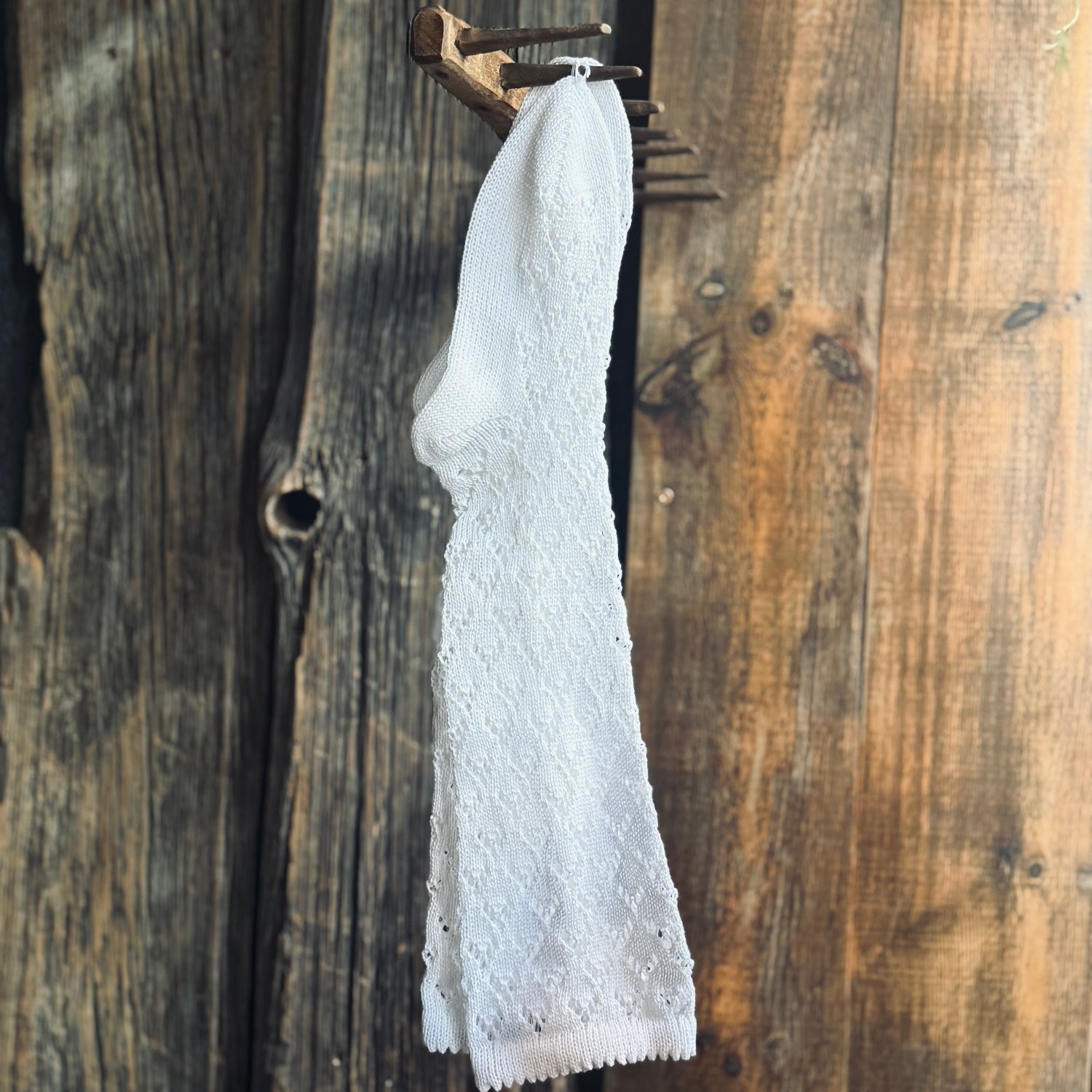 Baltas kokvilnas garas zeķes. Zeķu augšgalā ir ievērta gumija, bet neatvairāmas tās padarīs, ja ievērsiet tajās prievītes - košas un pamanāmas!