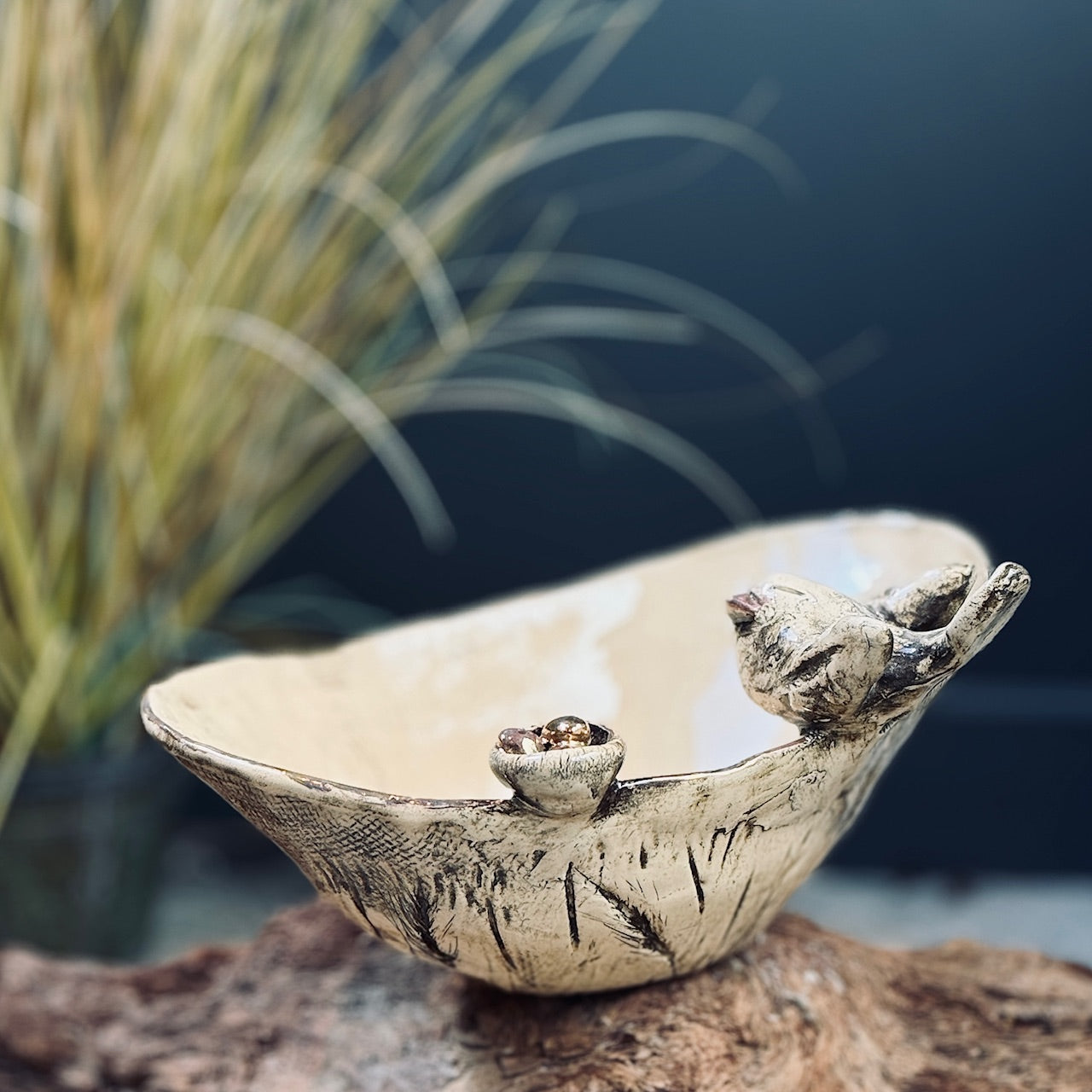 Keramikas trauki no baltā māla ir radīti iedvesmojoties no dabas klusās poēzijas - lauku vārpu smalkums un brīvībā dziedošu putnu viegluma.