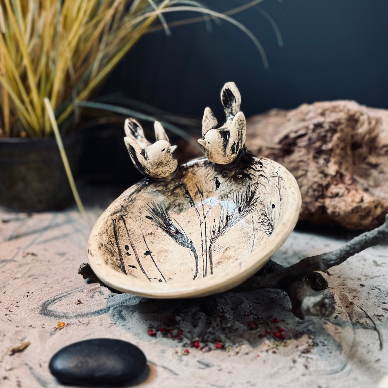 Keramikas trauki no baltā māla ir radīti iedvesmojoties no dabas klusās poēzijas - lauku vārpu smalkums un brīvībā dziedošu putnu viegluma.