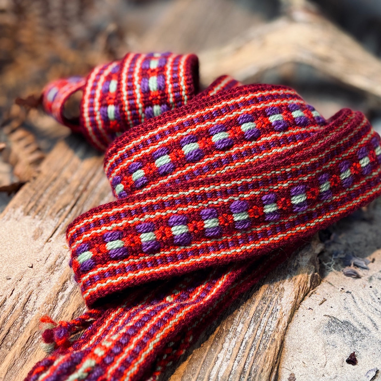 Dzērbenes austā josta ir Vidzemes tautastērpa sirds - rakstiem bagata, dzīvības pilna un izteiksmīgi sarkana. Austajā Dzērbenes jostā smalki savijas violeti pelēkas un gaiši zilas rūtiņas,kas simbolizē līdzsvaru, auglību, un gaismas spēku.
