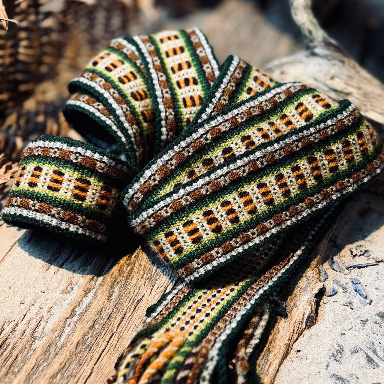 Zaļi brūnā austā josta - 3.25cm garums/ 5cm platums