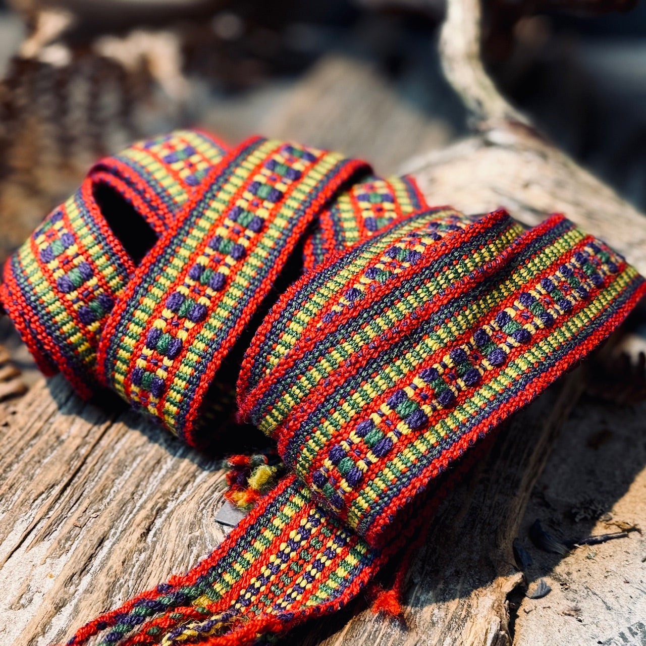 Skrīveru josta austa no dabīgas vilnas, stingra un ilgmūžīga, piemērota tautastērpam, deju kolektīvu tērpiem vai simboliskai dāvanai, kas izstaro latvisku dzīvesspēku