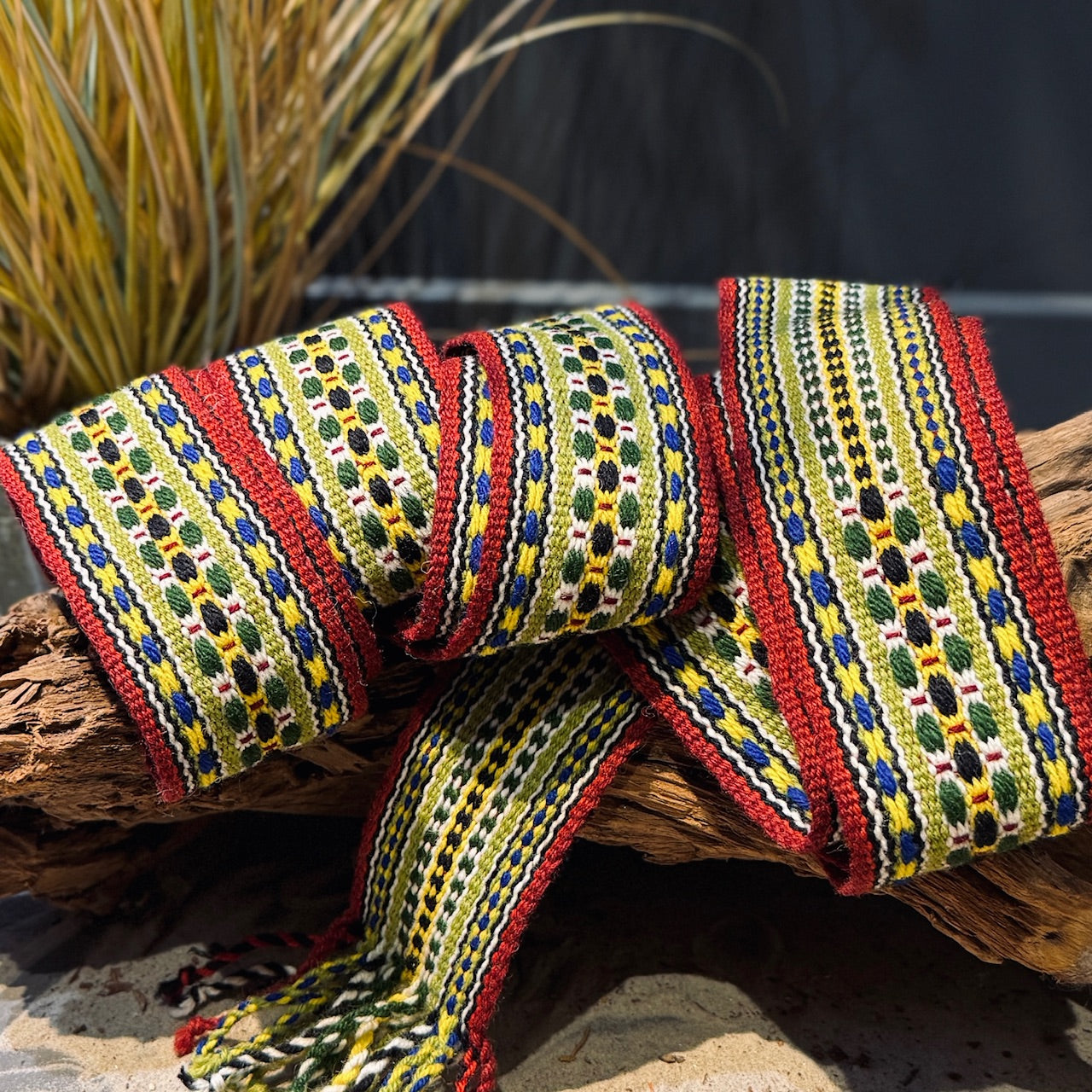 Tūjas josta ir kā jūras vējš pavasara saulē - dzirkstoša, dzīvības pilna un gaismas bagāta. Tās rakstos savijas dzeltenā, zaļā, baltā, zilā un tumši sarkanā krāsa, radot bagātīgi izstrādātu ritmisku musturu. Šī josta raksturīga Ziemeļvidzemes piekrastes reģionam, kur rakstu valoda bijusi ne tikai rotājums, bet arī vēstījums par piuederību savai zemei.