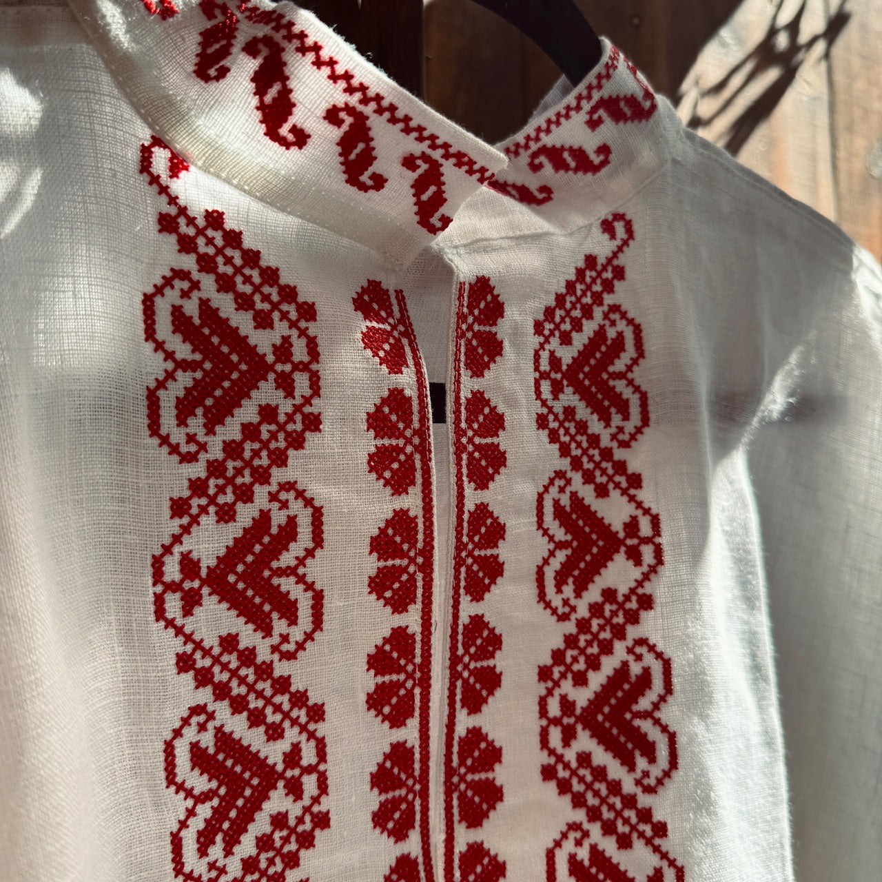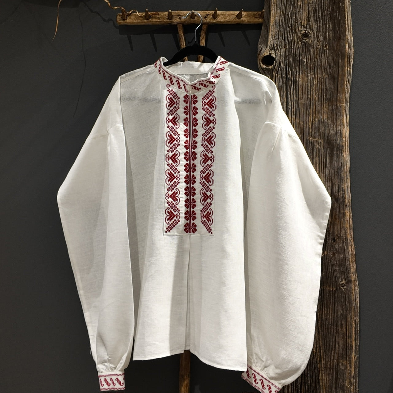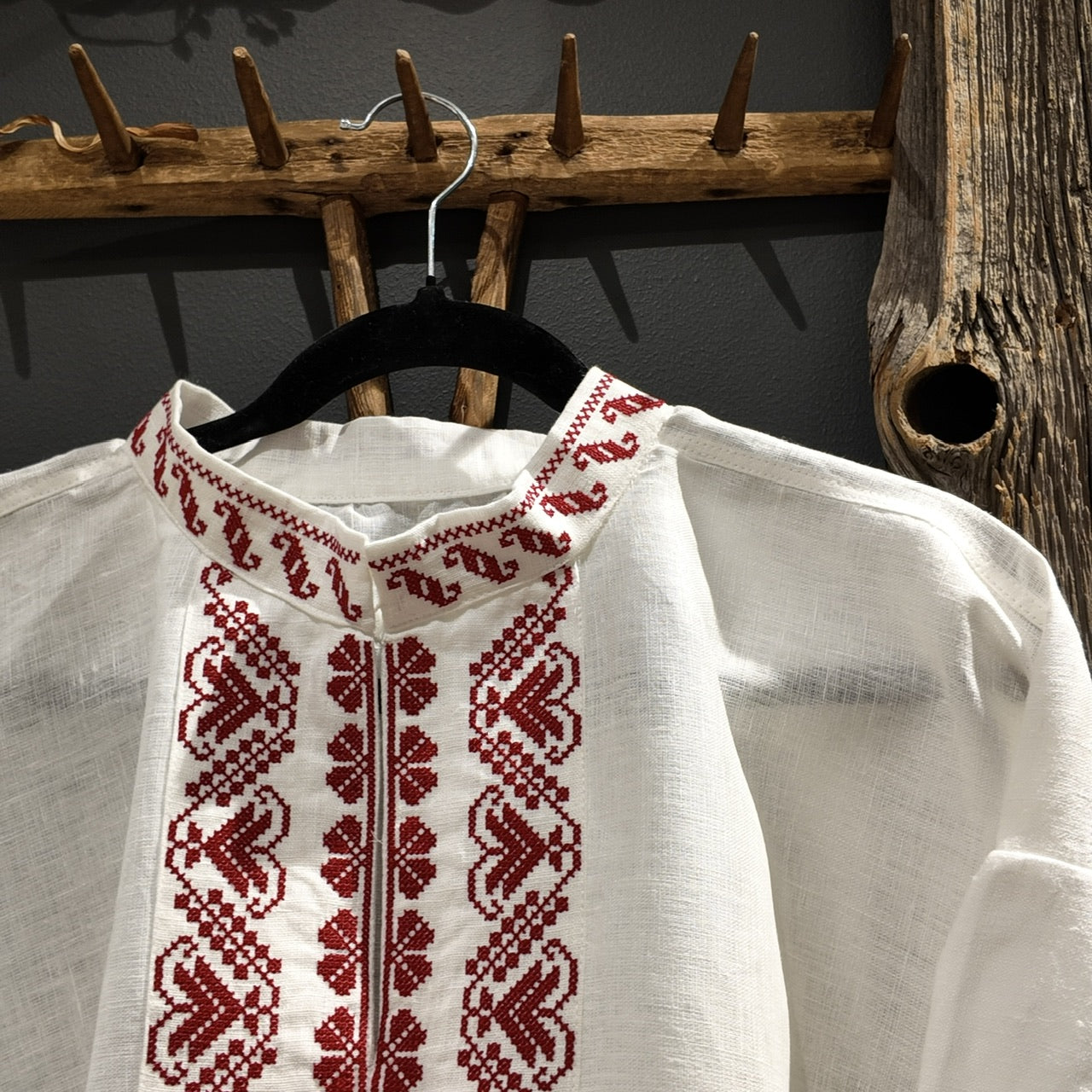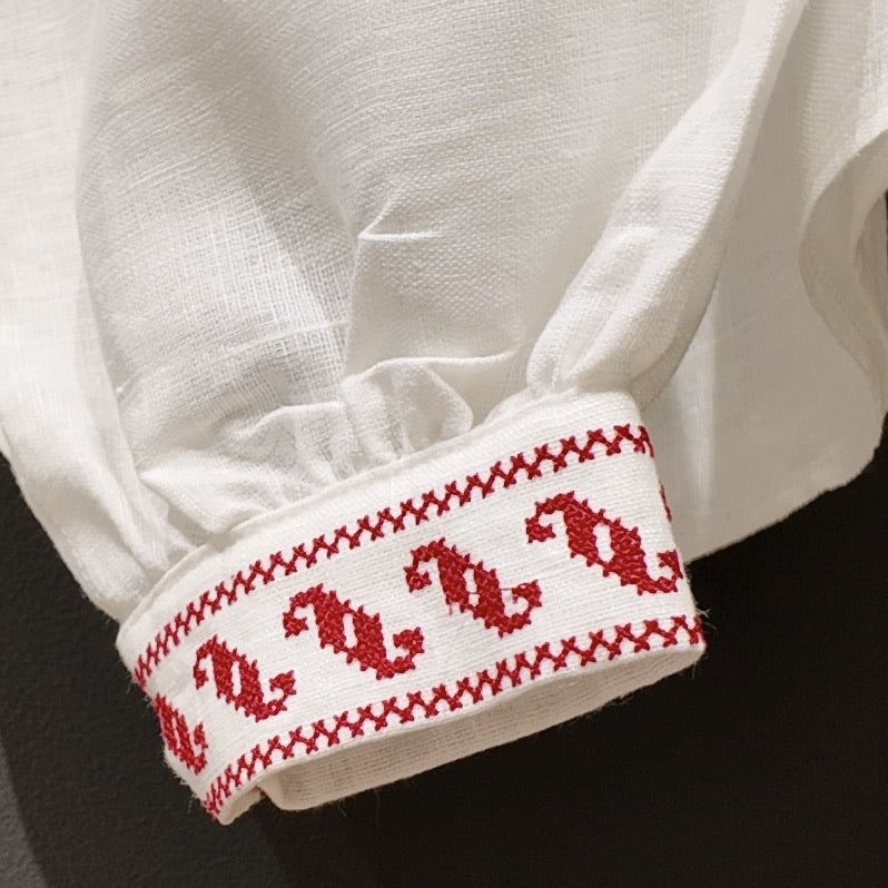 Krekls ir darināts no kvalitatīva lina auduma, saglabājot autentiskumu un senču amata prasmes. Smalks roku darbs un vēsturiskā precizitāte padara šo kreklu par izcilu izvēli svētku reizēm, tautas deju kolektīviem un tradīciju cienītājiem.