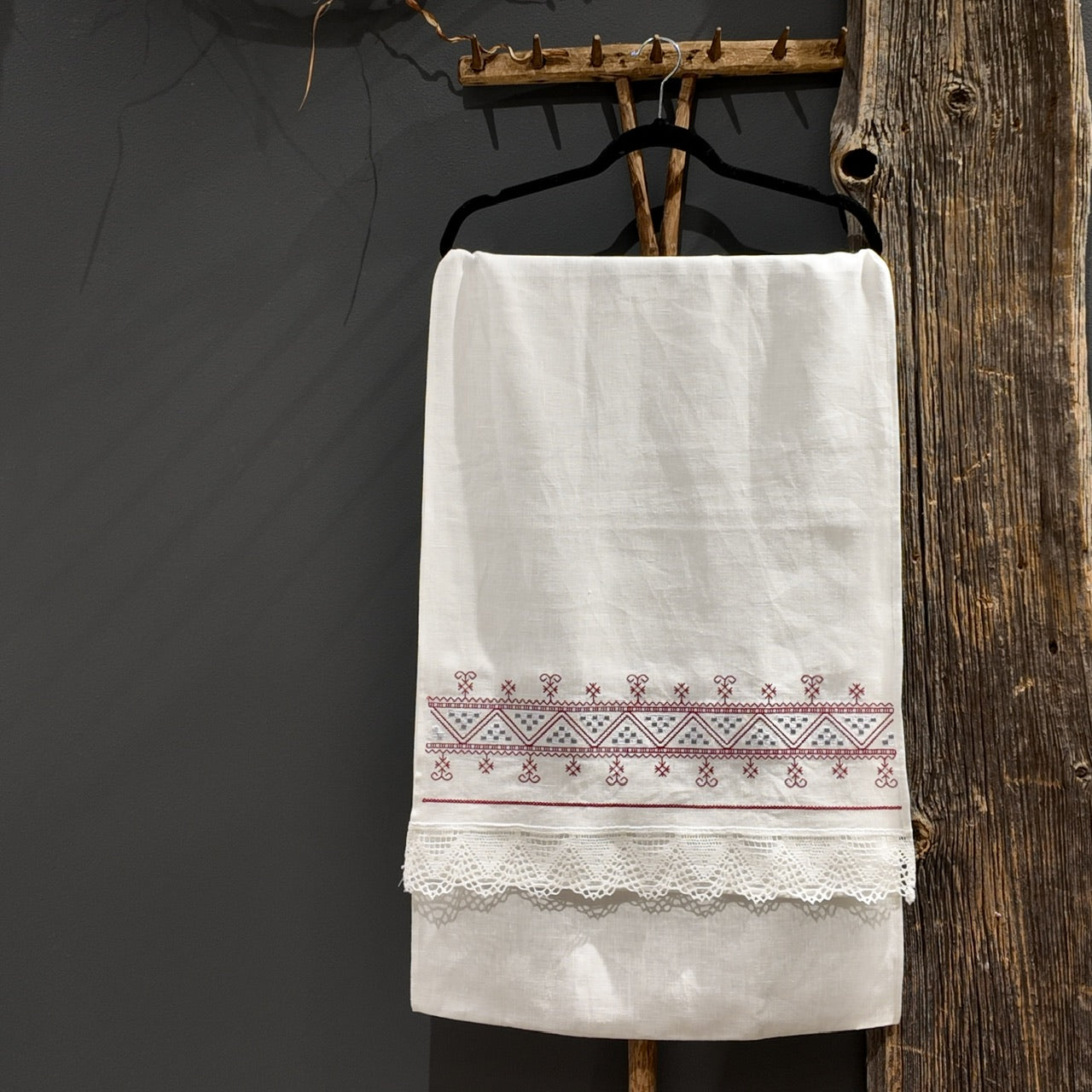 Latgales galvas auts ar baltu mežģīni un izšuvumu vienā galvas auta galā.
