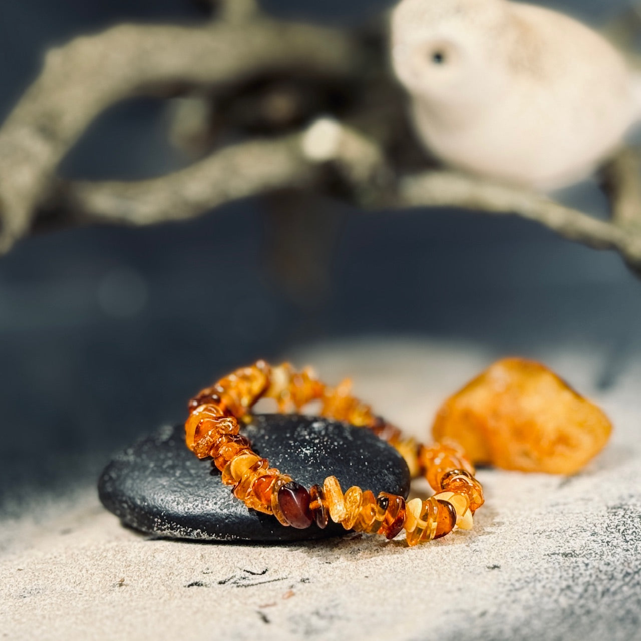 - Tradicionālā aizsardzība: Dzintars vēsturiski ticis uzskatīts par aizsargakmeni - it kā sargā bērnu no negatīvās enerģijas, ļaunas acs, slimībām utt.