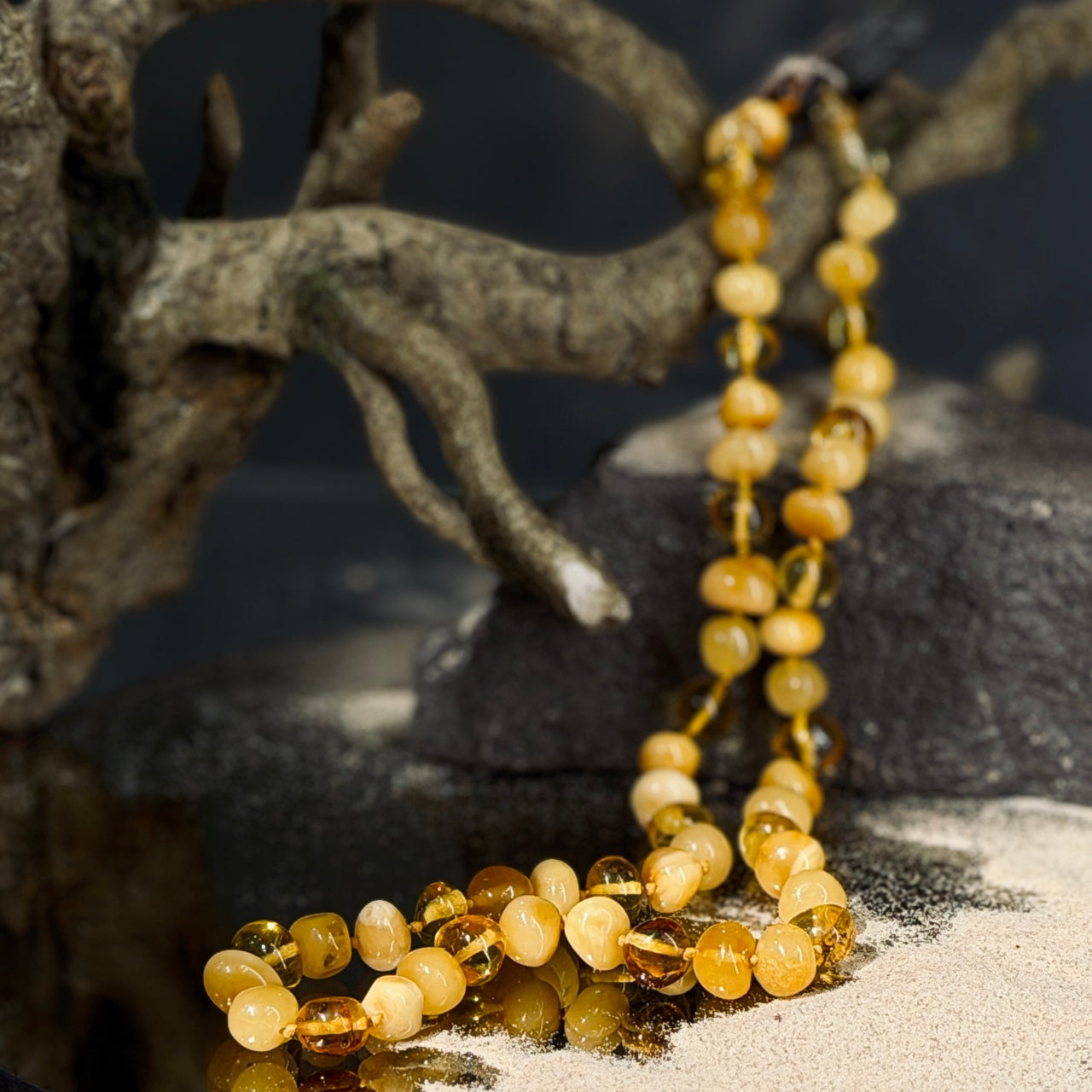 Pulēta dzintara krelles