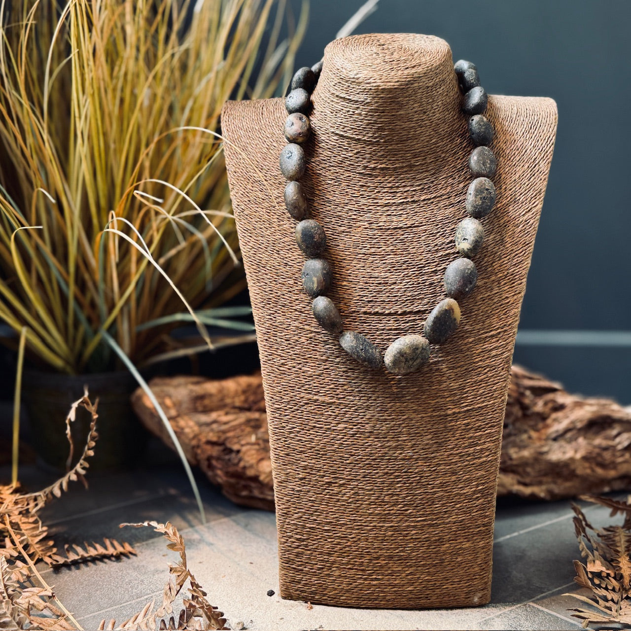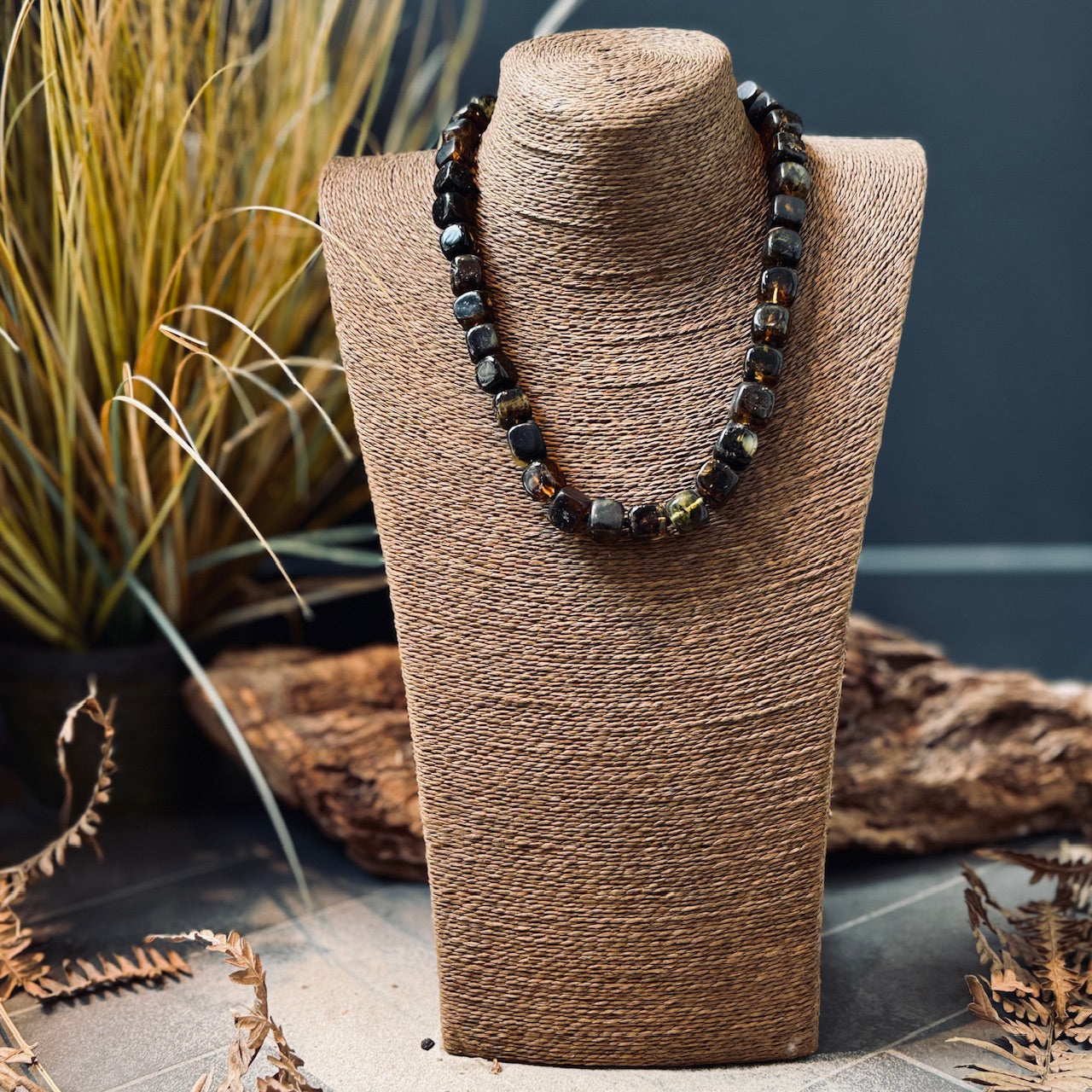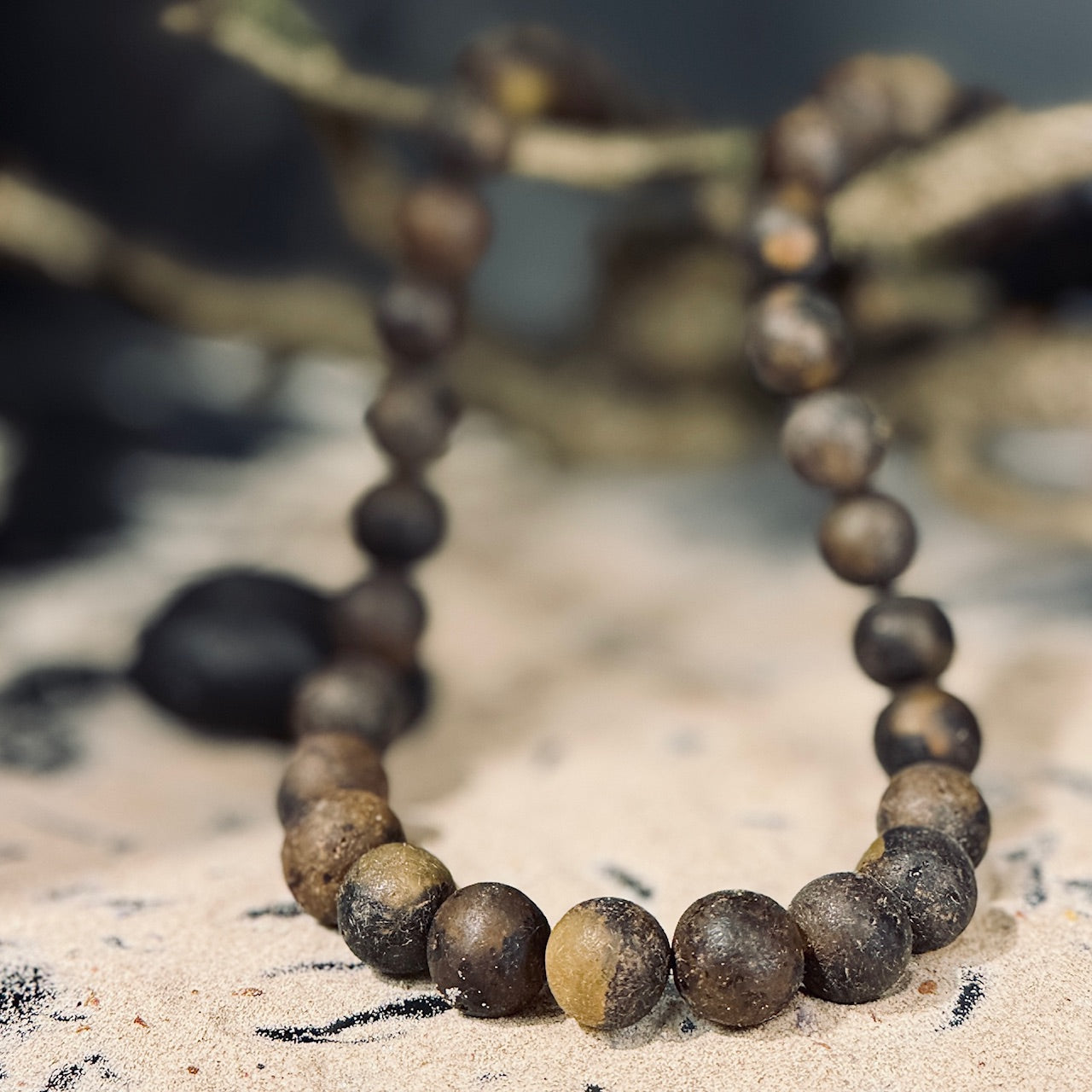 Šis dzintars netiek pulēts, ļaujot tam palikt pilnīgi dabiskam, saglabājot savu autentisko tekstūru un "senatnes elpu". Katra bumbiņa ir unikāla, ar nelieliem plankumiem un krāsu niansēm, kas padara katru rotu neatkārtojamu.