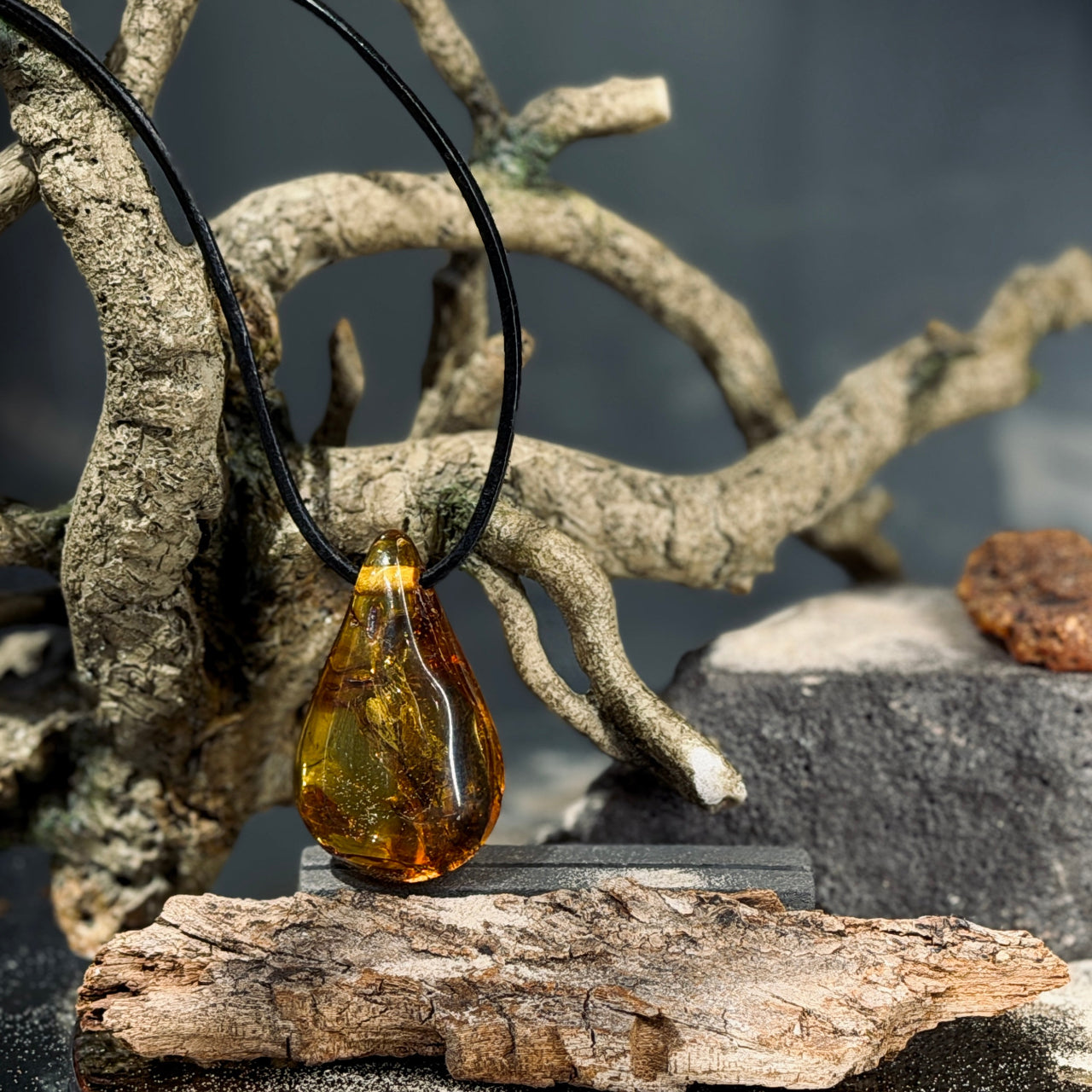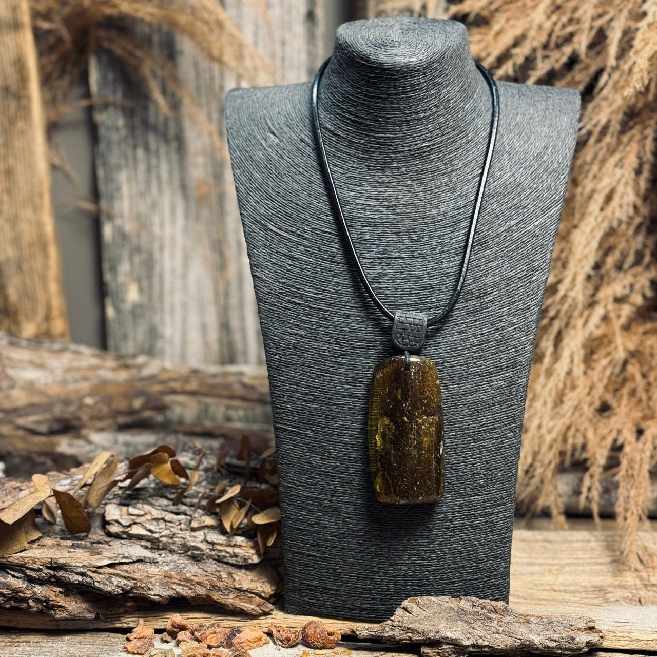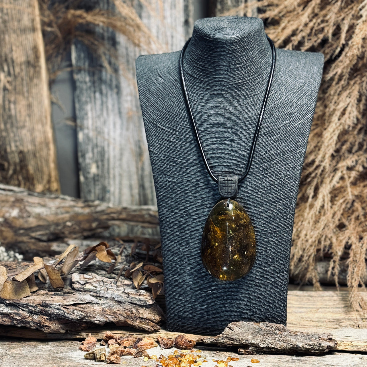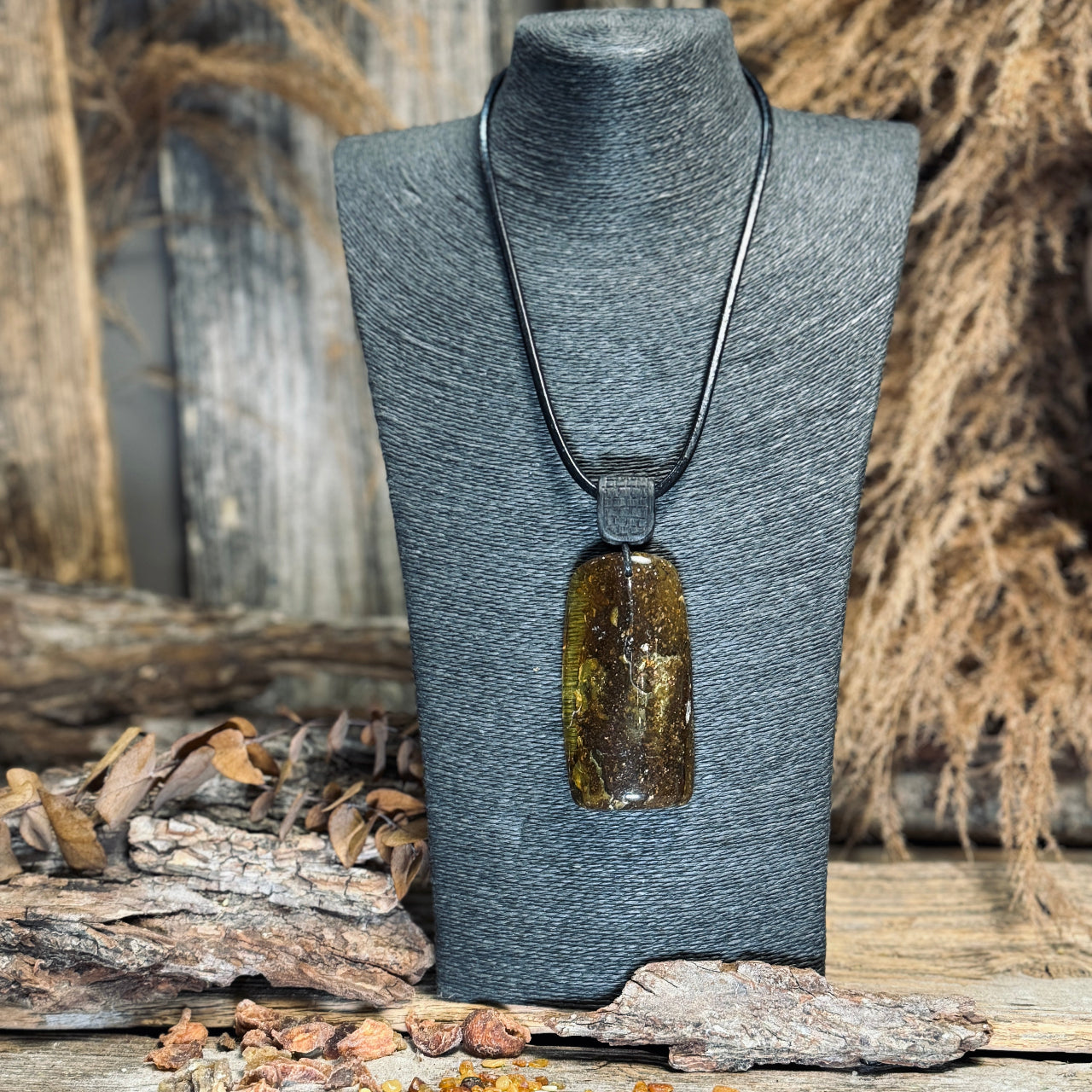 Dzintara kuloni LĀSE ar ozolkoka elementiem