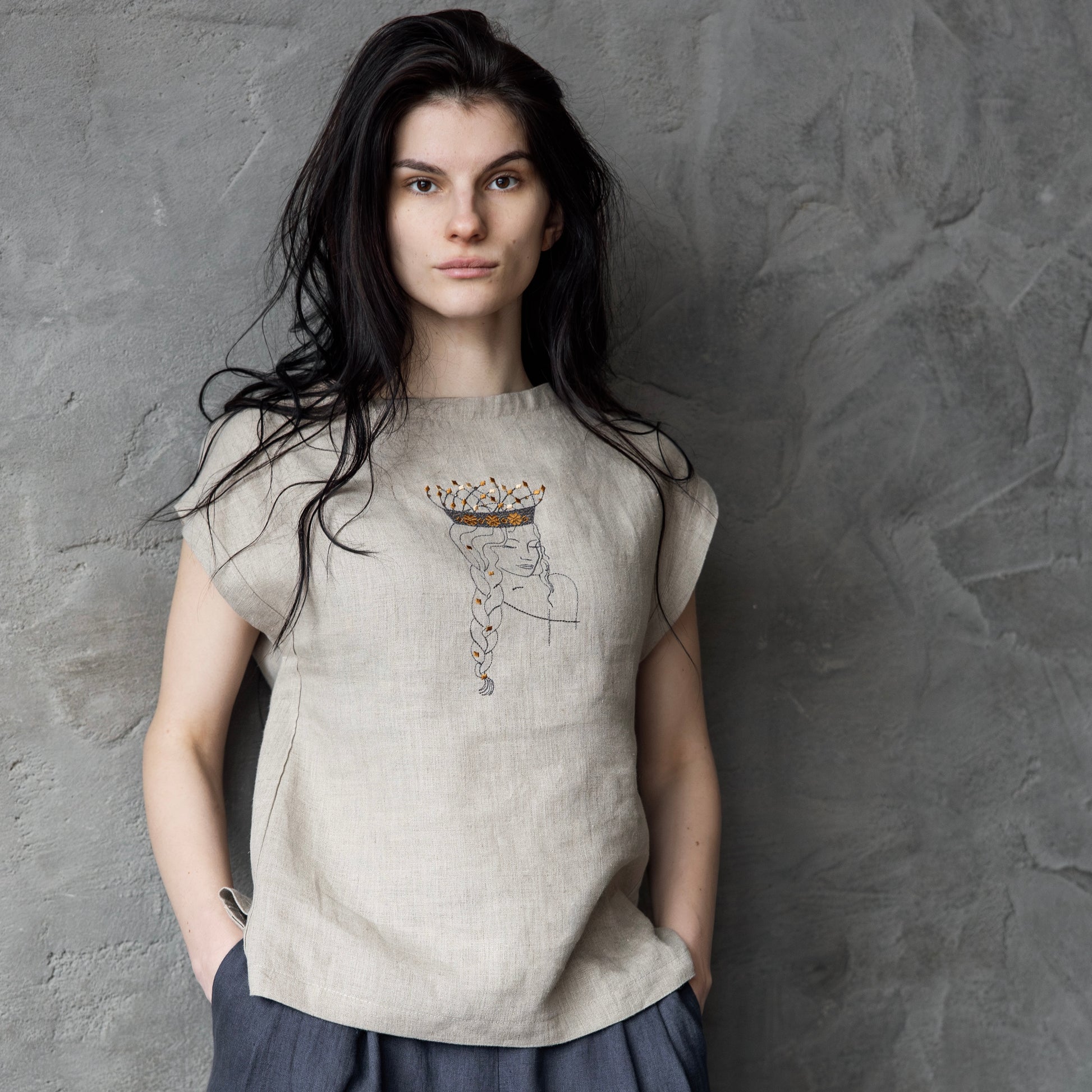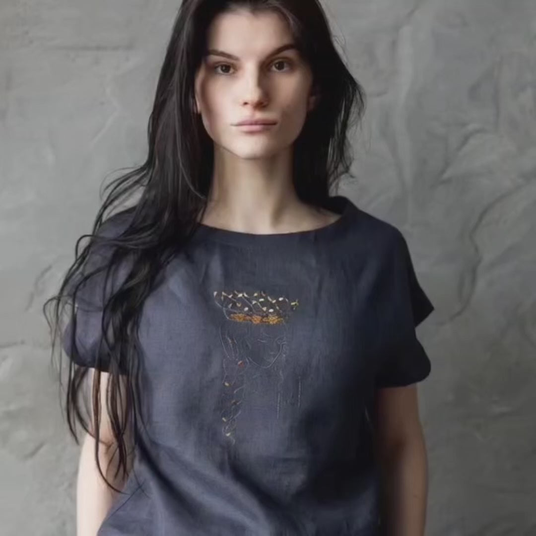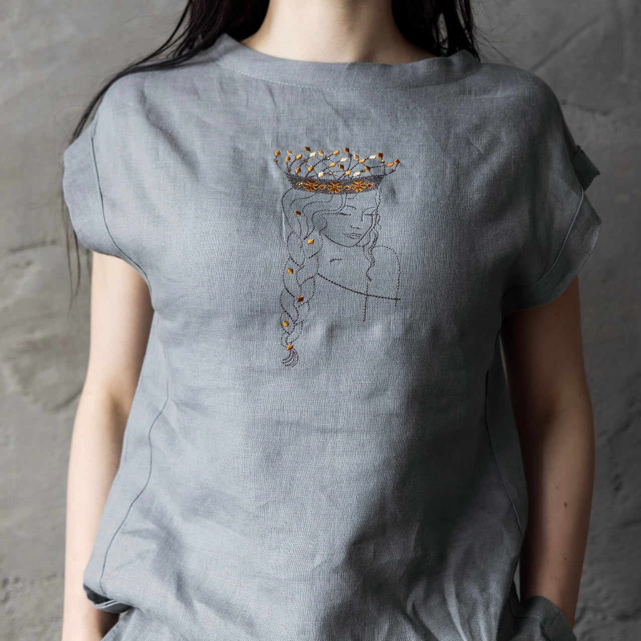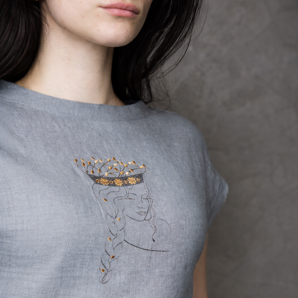 Lina blūzīte DŪMAKA ar izšūtu DZINTARA KRONI