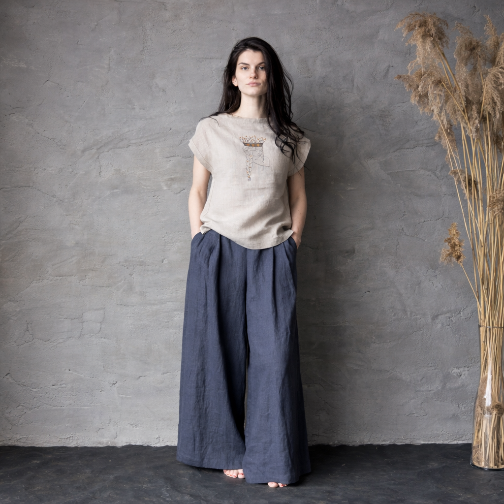 Ieelpo plašumu - vienkārša, taču ar raksturu - šī lina blūze apvieno estētiku, ko iedvesmojusi daba un brīvība, ko sniedz autentisks piegriezums. Brīvais piegriezums ļaus kustēties brīvi un dabiski, bet mīkstinātais lins piešķir izsmalcinātu vieglumu un gaisīgumu. Iekritīs kā mīksts mākonis, ļaujot ādai elpot un Tavam stilam runāt pašam par sevi. Lina auduma labākā īpašība? BRĪVĪBA!!!