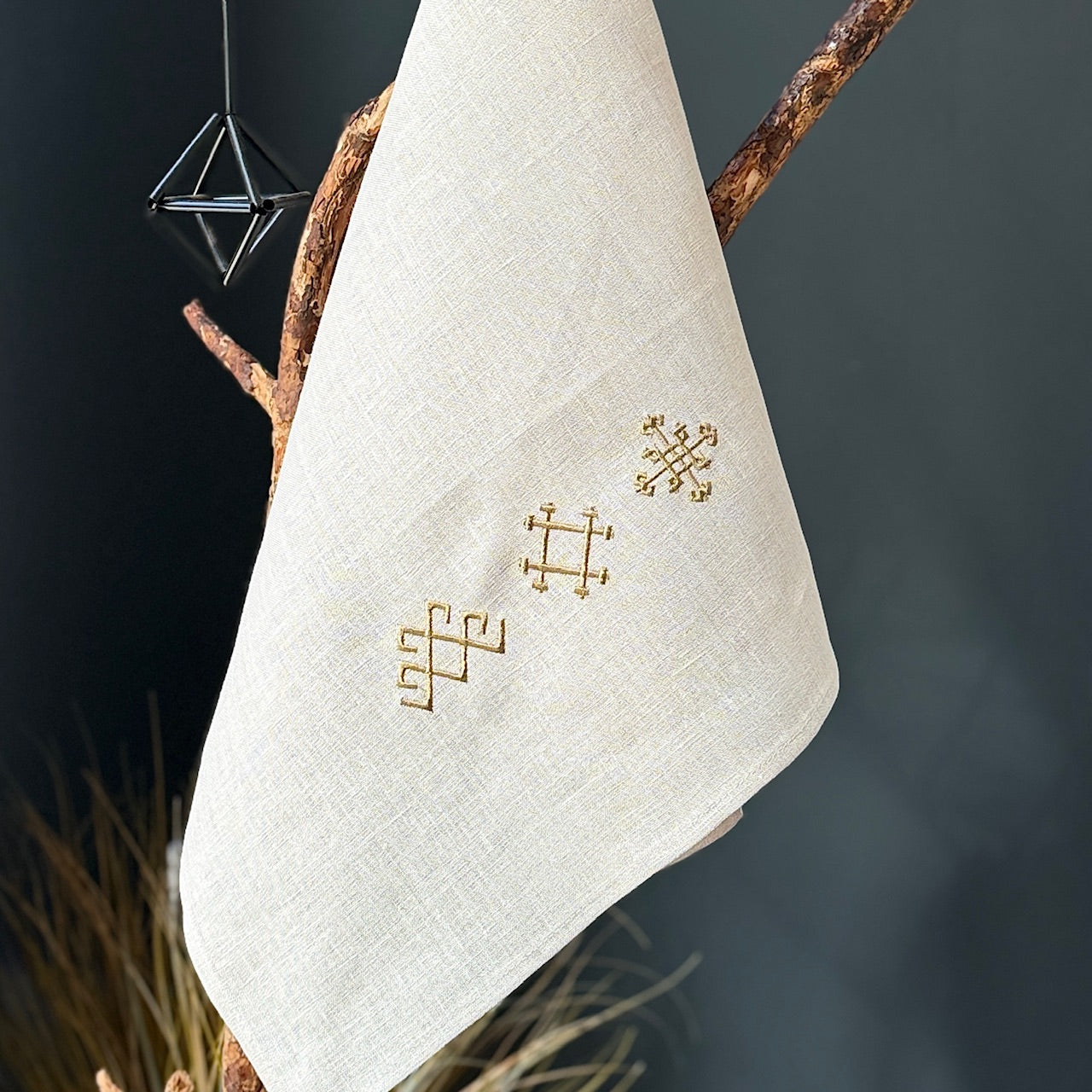 Lina roku dvieļi ir ne tikai prakstiski un estētiski, bet arī piesātināti ar dziļu simboliku. Katrs dvielis ir izšūts ar senajām latviešu spēka zīmēm.