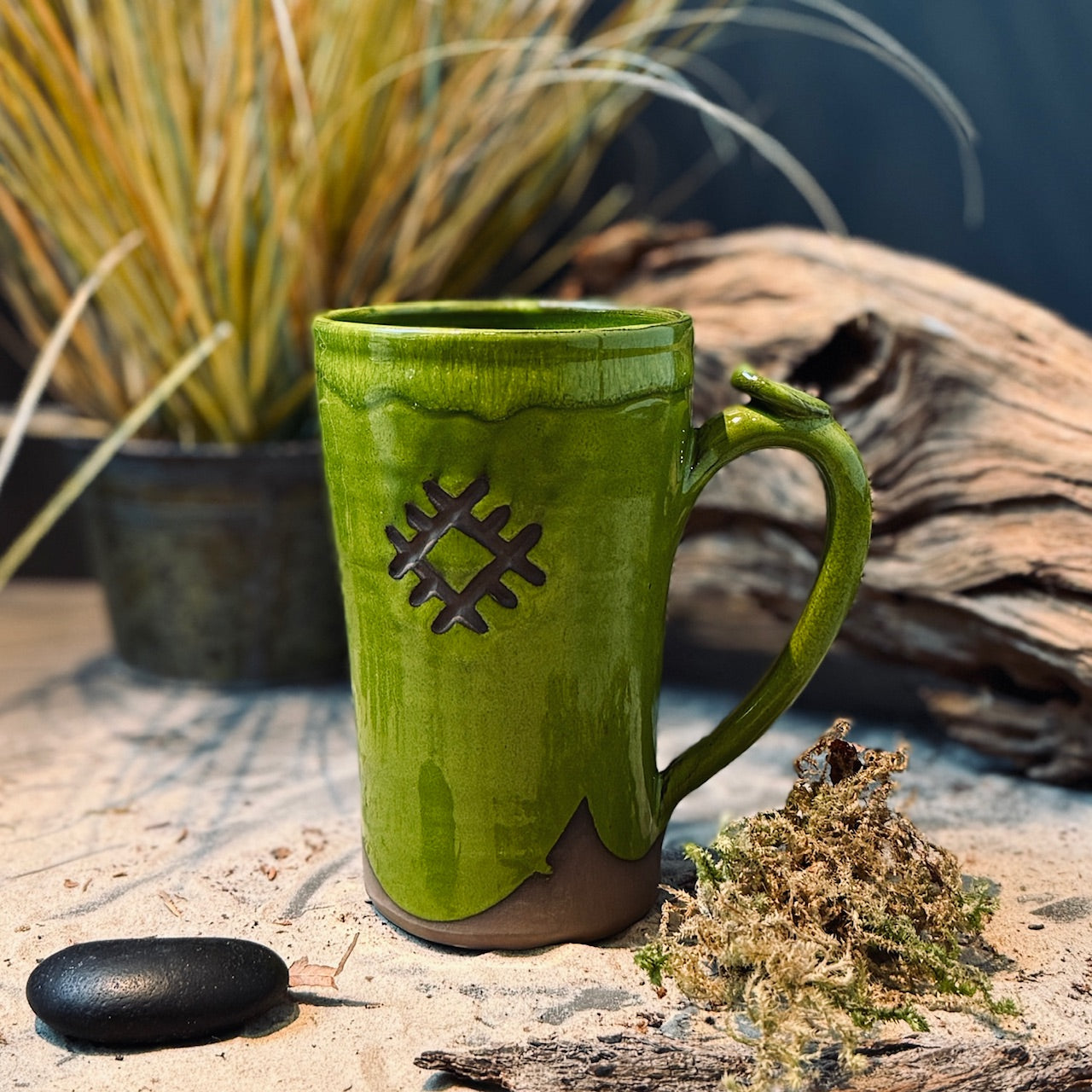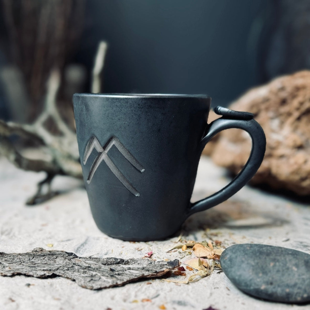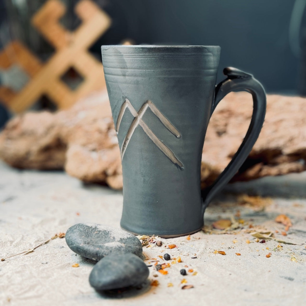 Latviešu spēka zīmes uz keramikas krūzēm ir kā ceļš starp mūsu tautas, autora identitāti un lietotāju, kas trauka prakstiskajam pielietojumam piešķir arī astrālas aizsardzības nozīmi.