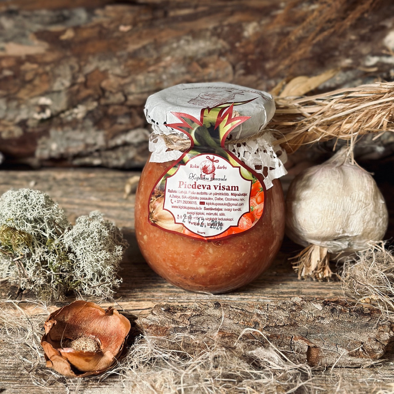 Sastāvs: svaigi tomāti, svaigi ķiploki, mārrutki, sāls.
