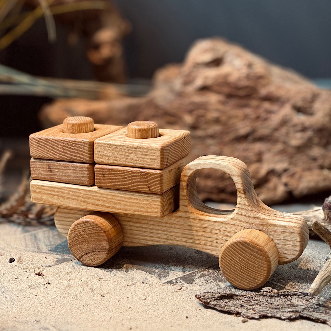 Koka auto ir izgatavoti no Oša koka. Koka auto ir droši, izturīgi un estētiski pievilcīgi jebkura bērna rotaļām.
