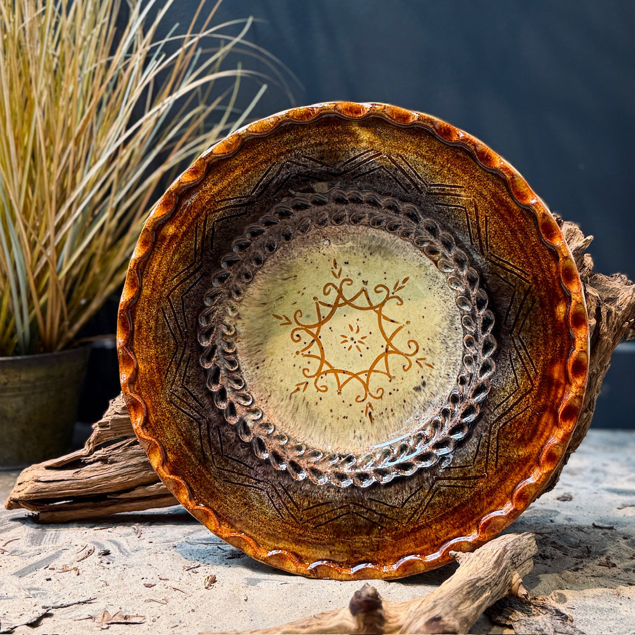 Latgales sienas šķīvji ir darināti ar rokām, košajās glazūrās ir viegli iestrādāti dažādi ornamenti.