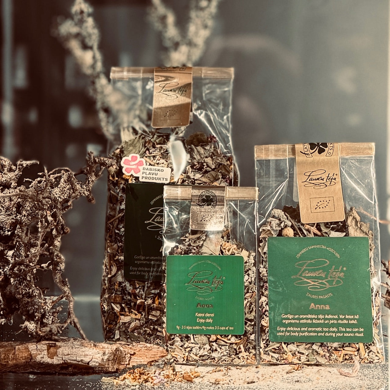 Tējas vāktas un radītas bioloģiski sertificētā saimniecībā Cēsu novada, Zaubes pagasta, Annās. Tēju maisījumi, kuri veidoti pēc zinātņu doktores Helēnas Rubīnes ieteikumiem un senām zāļu tēju veidošanas tradīcijām. Katra no tējām ir labs papildinājums ikdienas uzturam vai veselības uzlabošanai. Iesakām iepazīt un izmantot tējā iekļauto drogu dziednieciskās īpašības.