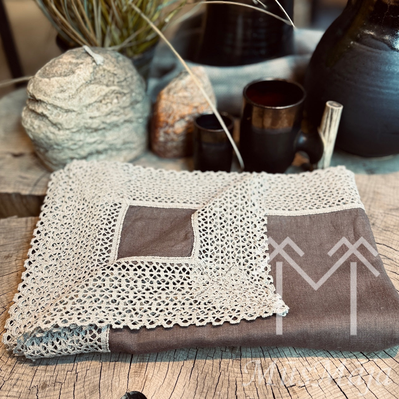 Lina galdauts "BRŪNAIS MĀLS" ar šūnas mežģīni