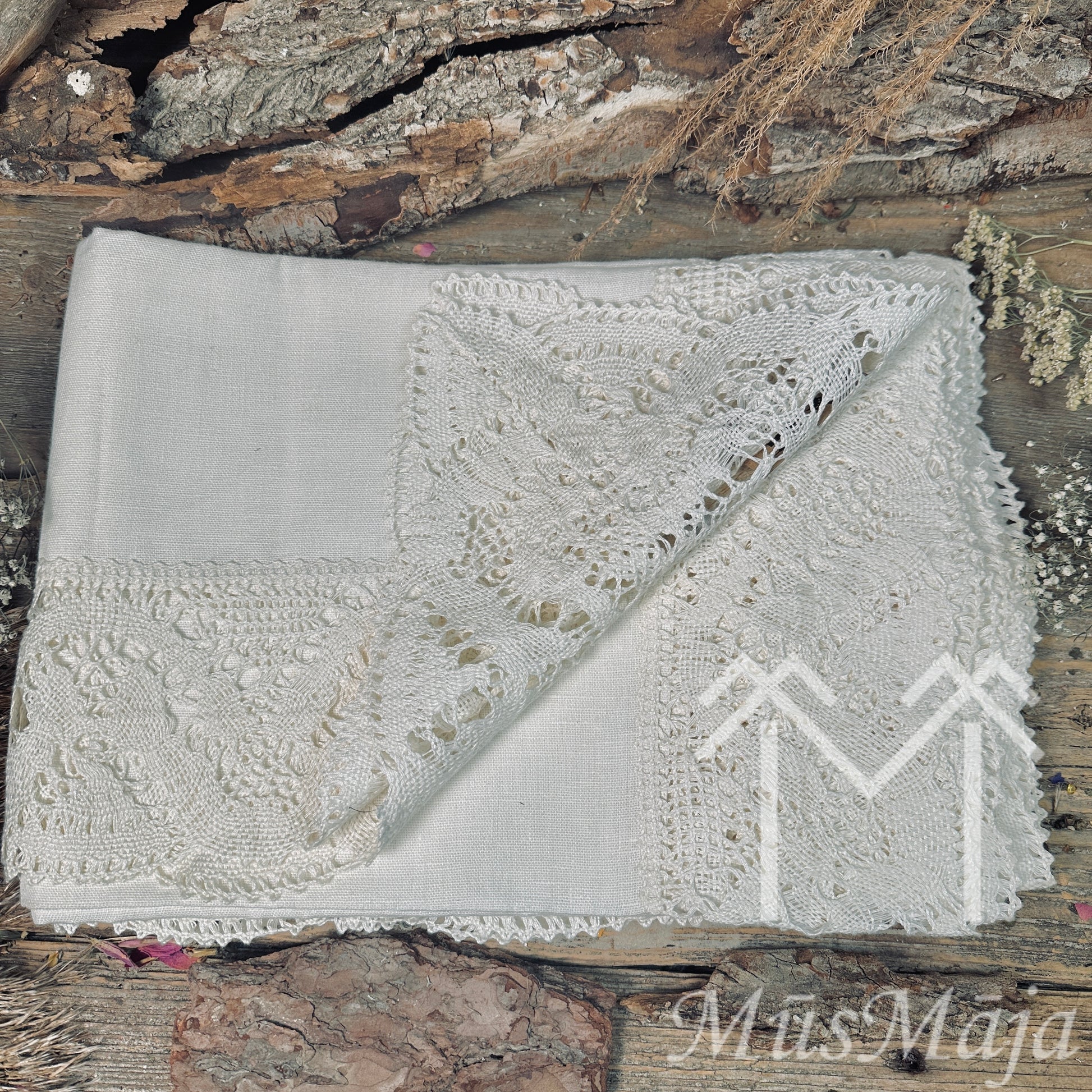 Lina galdauts "PIENEŅPŪKA" ar retro mežģīni
