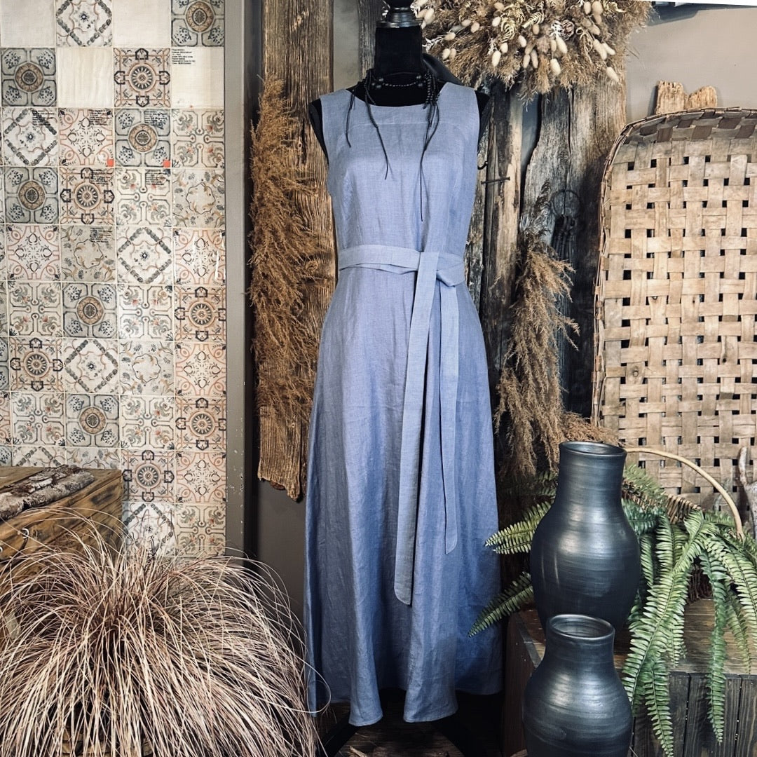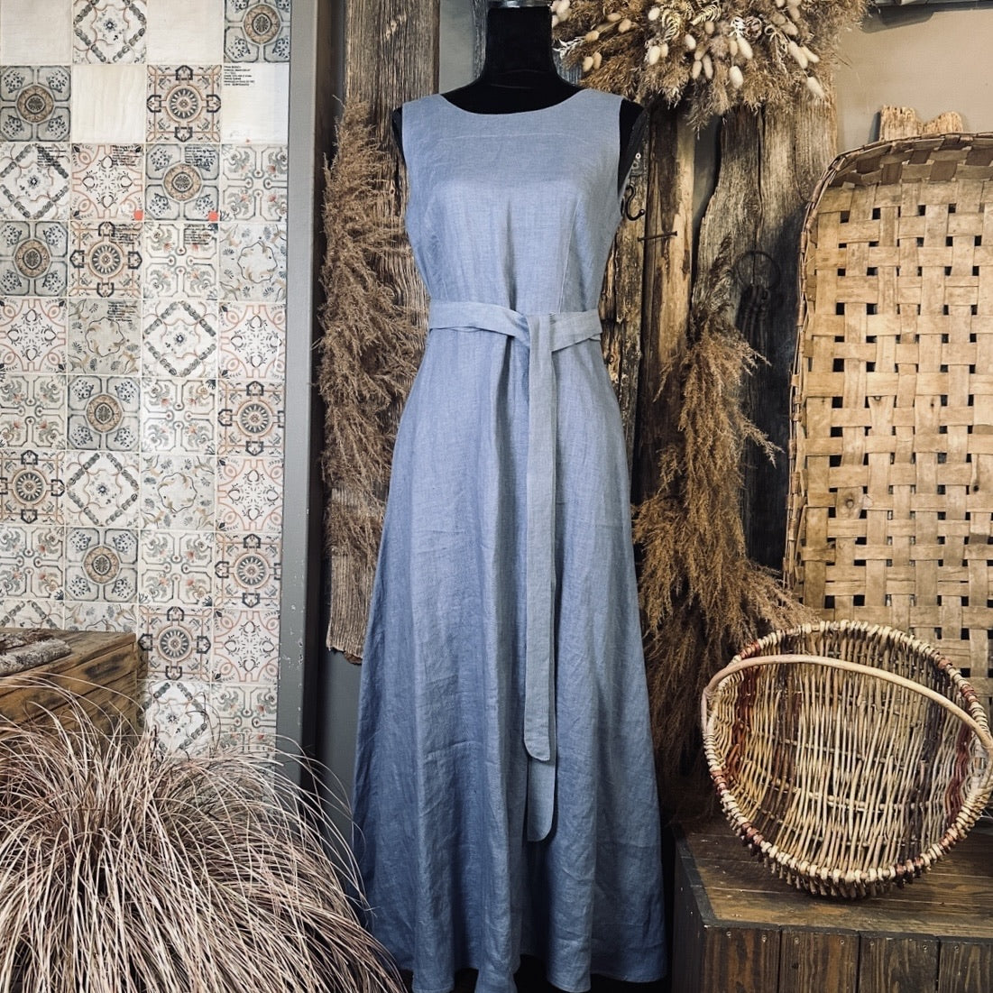 Eleganta un vienlaikus vienkārša - šī garā lina kleita ir radīta sievietei, kura novērtē dabiskumu, brīvību un klusinātu skaistumu. Taisns griezums, viegli regulējama jostiņa un dabisks kritums piešķir lina kleitai harmonisku siluetu, kas piestāv gan ikdienai, gan svinīgiem brīžiem.