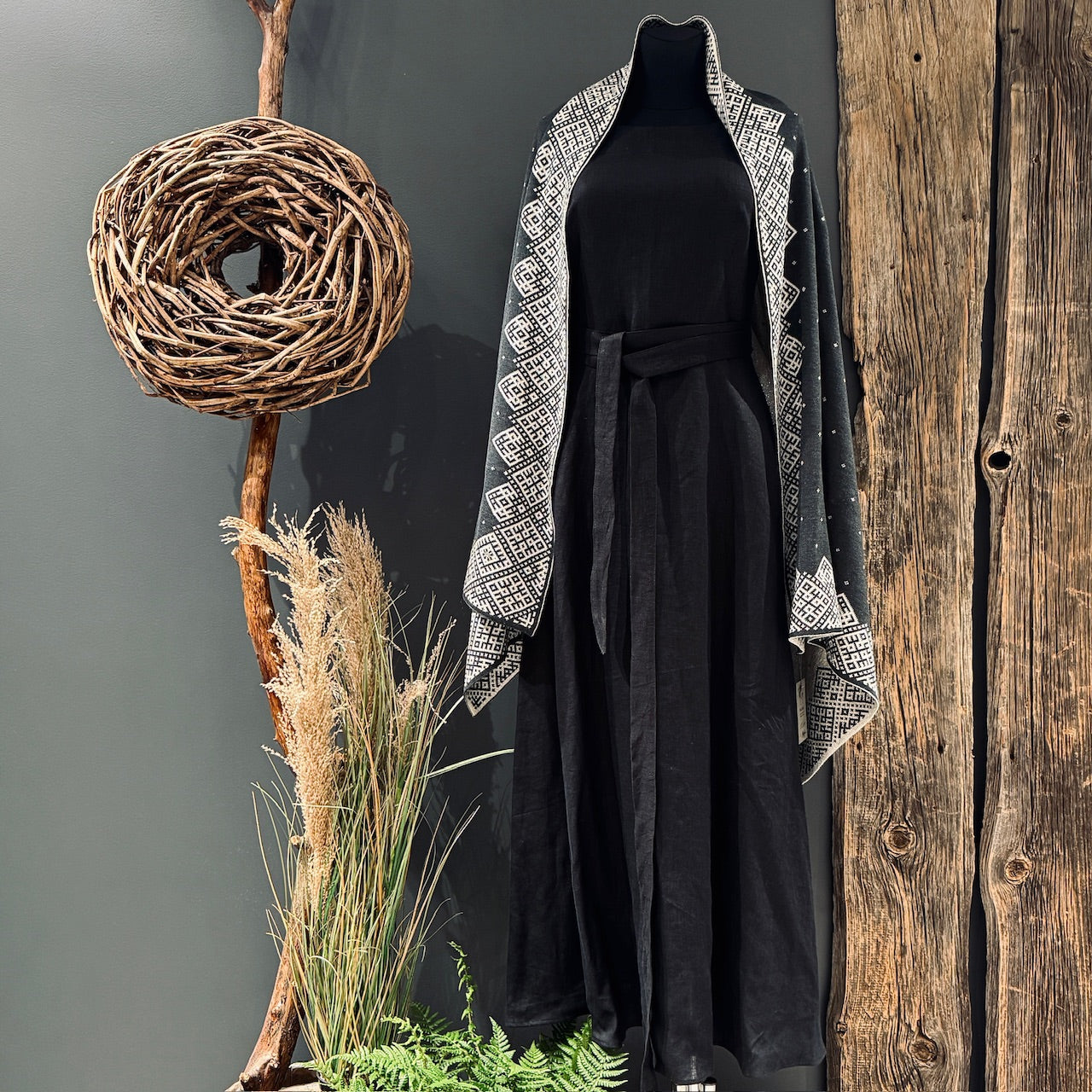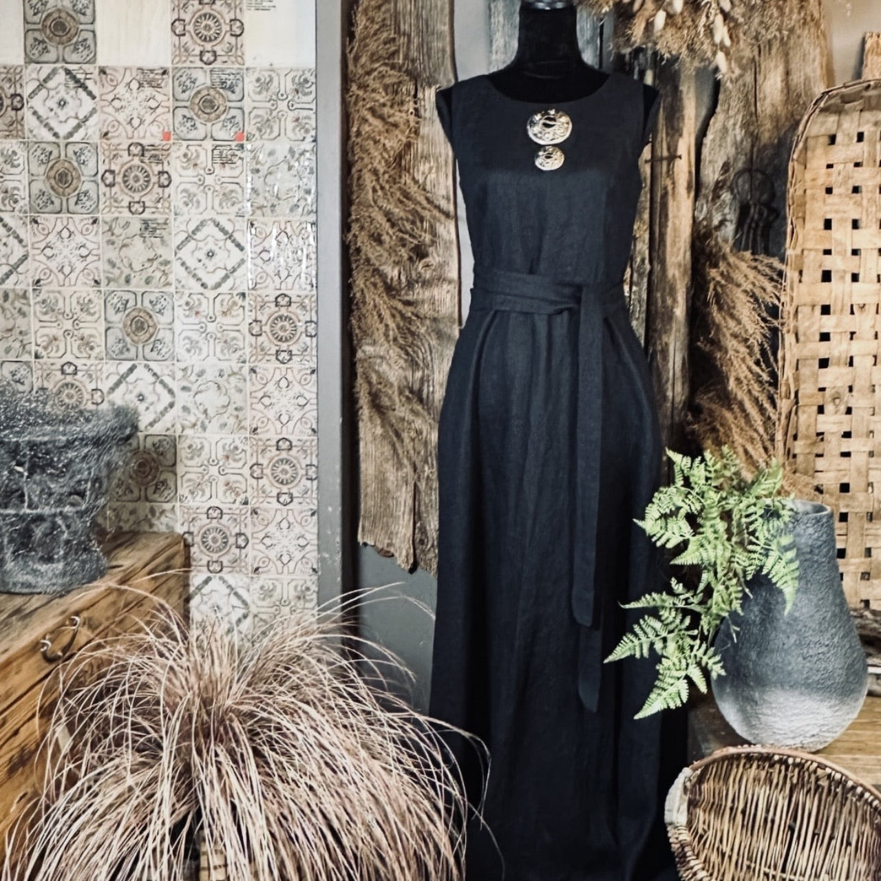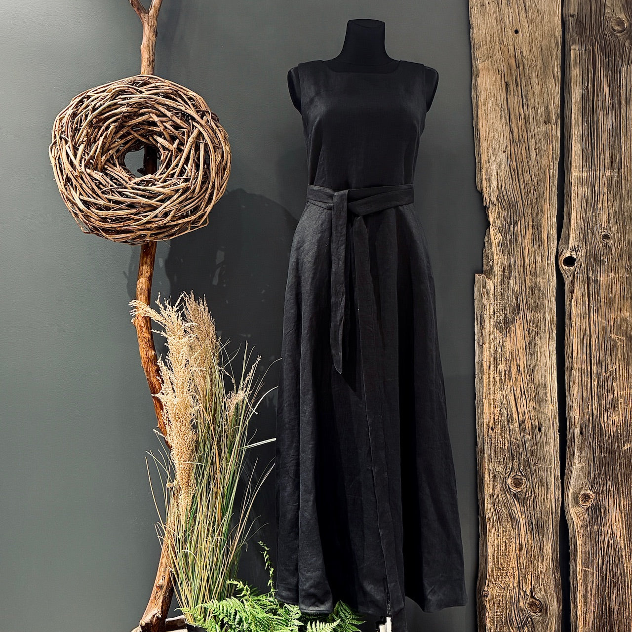 Eleganta un vienlaikus vienkārša - šī garā lina kleita ir radīta sievietei, kura novērtē dabiskumu, brīvību un klusinātu skaistumu. Taisns griezums, viegli regulējama jostiņa un dabisks kritums piešķir lina kleitai harmonisku siluetu, kas piestāv gan ikdienai, gan svinīgiem brīžiem.