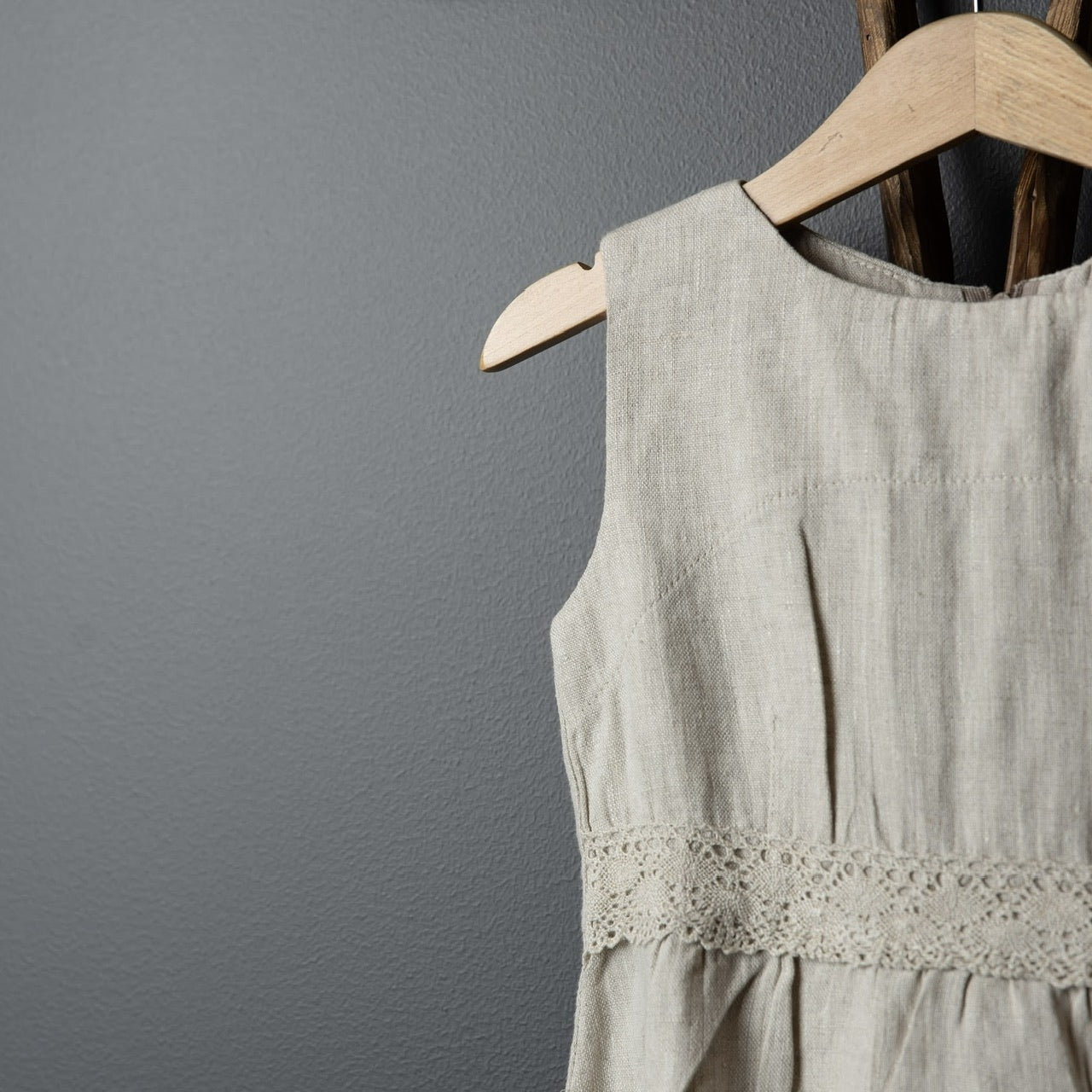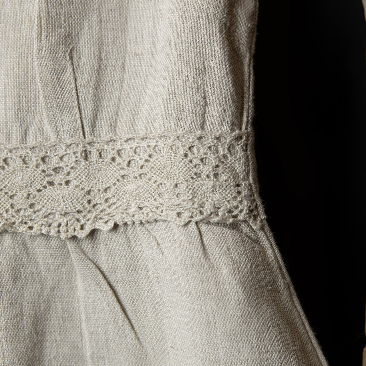 Lina kleita izgatavota no augstas kvalitātes lina auduma, kleita ir elpojoša, ērta un piemērota gan ikdienai, gan svētkiem. Lina mežģīnes akcents viduklī piešķir gaumīgu pieskārienu.