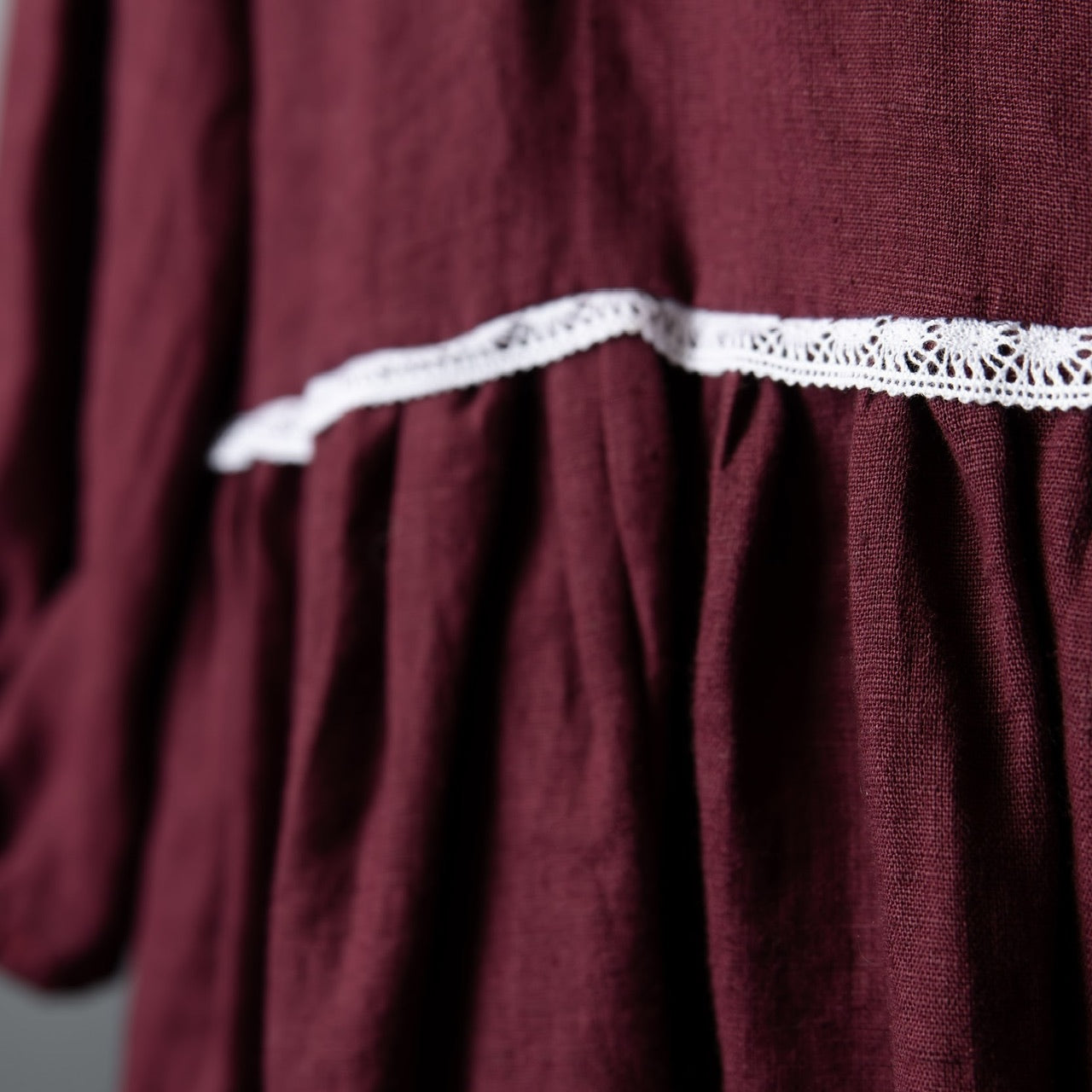 - Dekoratīva mežģīne vidukļa līnijā - izsmalcināts akcents tradicionālā stilā.