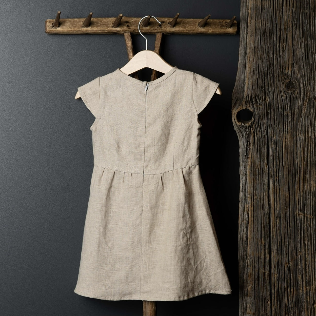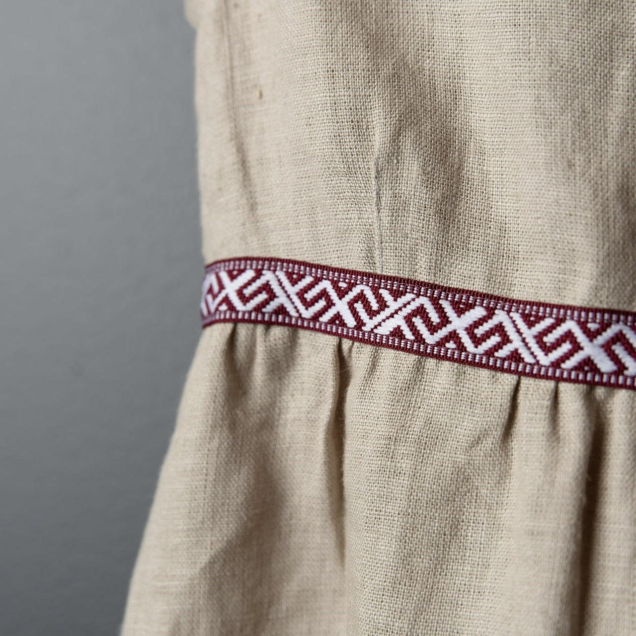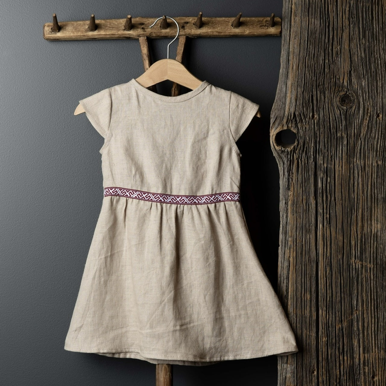 Šī lina kleita būs lieliska izvēle svinībām, fotosesijām vai kā īpaša dāvana mazajai latvju meitenei.