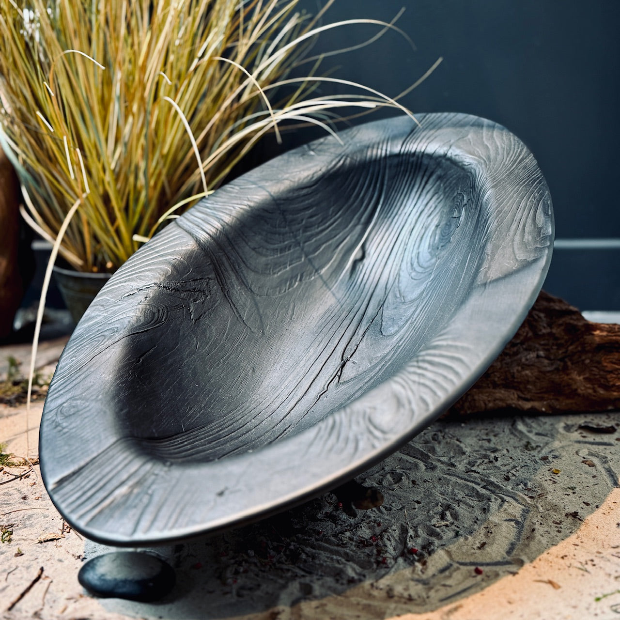Melnās keramikas bļodas LAIVA ar koka tekstūru
